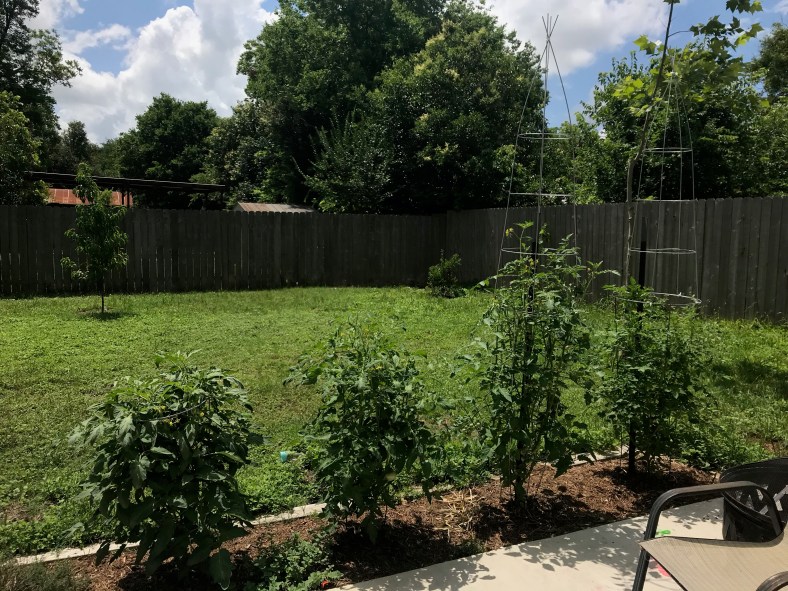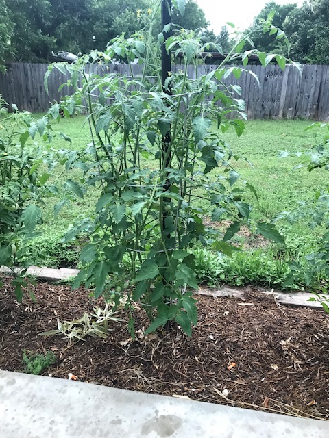 The two-year-old has discovered these plants are tomatoes. None have been lost to toddler predation yet but it’s just a matter of time. I’ve told her she has to at least wait till they turn red… we’ll see how long that rule holds.