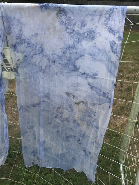 Second I put them in an old dish rack placed on top of a large piece of cardboard on the grass at the back of the yard. I then sprinkled the scarves with dry powder. A little goes a LONG way.