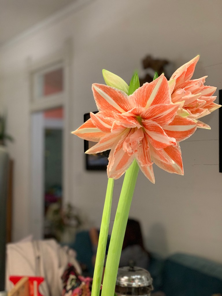 If you are getting a gift (next year) for a total plant person… there is nothing better than an expensive and more unique amaryllis bulb from a good plant company- the size of the bulbs are so much bigger (usually means 3 bloom stalks instead of just one or two) than what you can get at big box or grocery stores! And the colors… it’s a brave new world beyond the common red, white, and Apple Blossom varieties available locally. AND- if you’re planning that far ahead and we all get to go back into physical stores during the summer- stock up on cute smaller pots from places like TJ Maxx or Ross for this purpose. (Note to self for 2021)