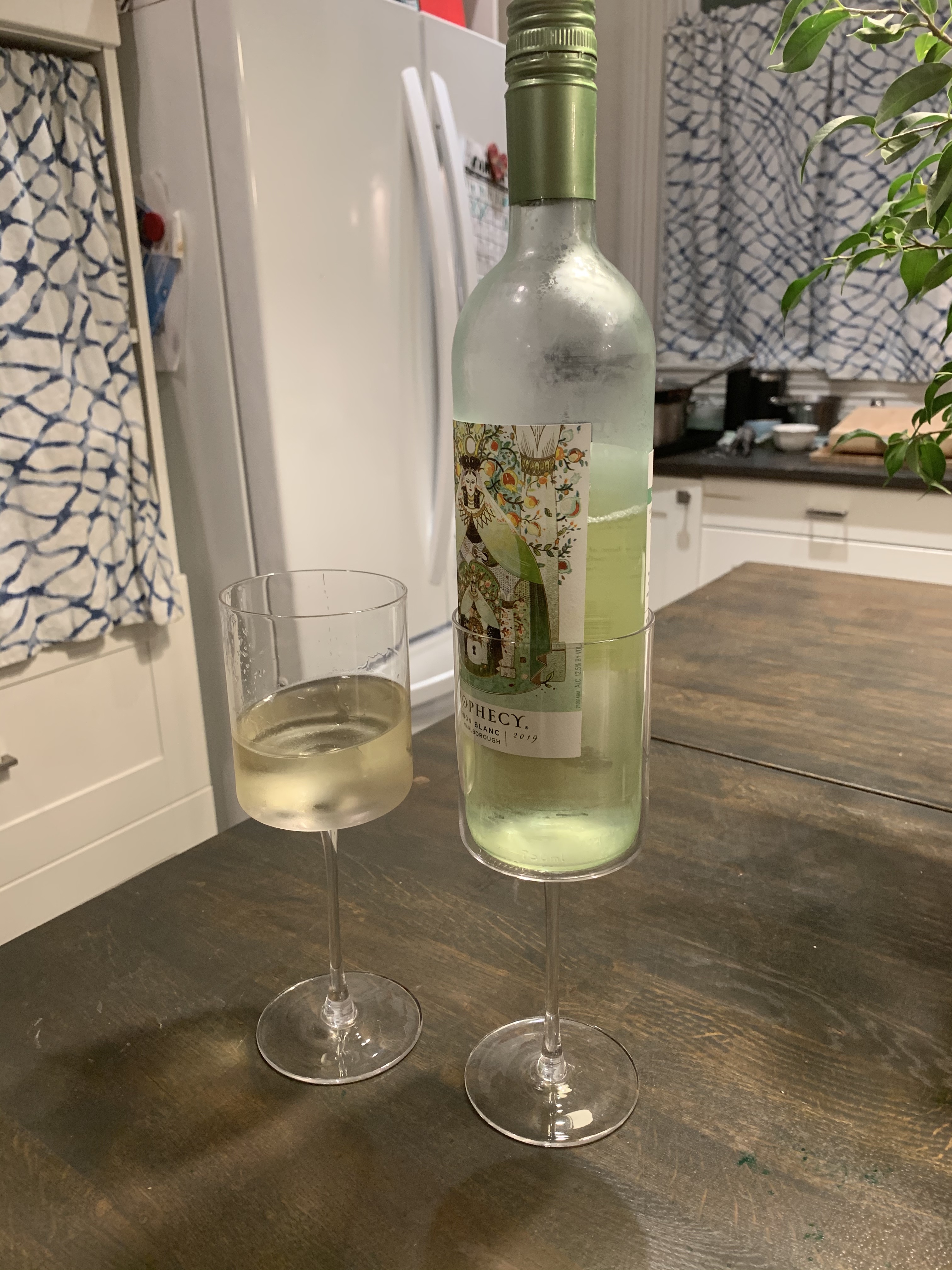 And finally, I took this picture to be funny and show my friend how an entire bottle of wine fits in my new wine glasses… and instead found out my kitchen needs to be leveled.