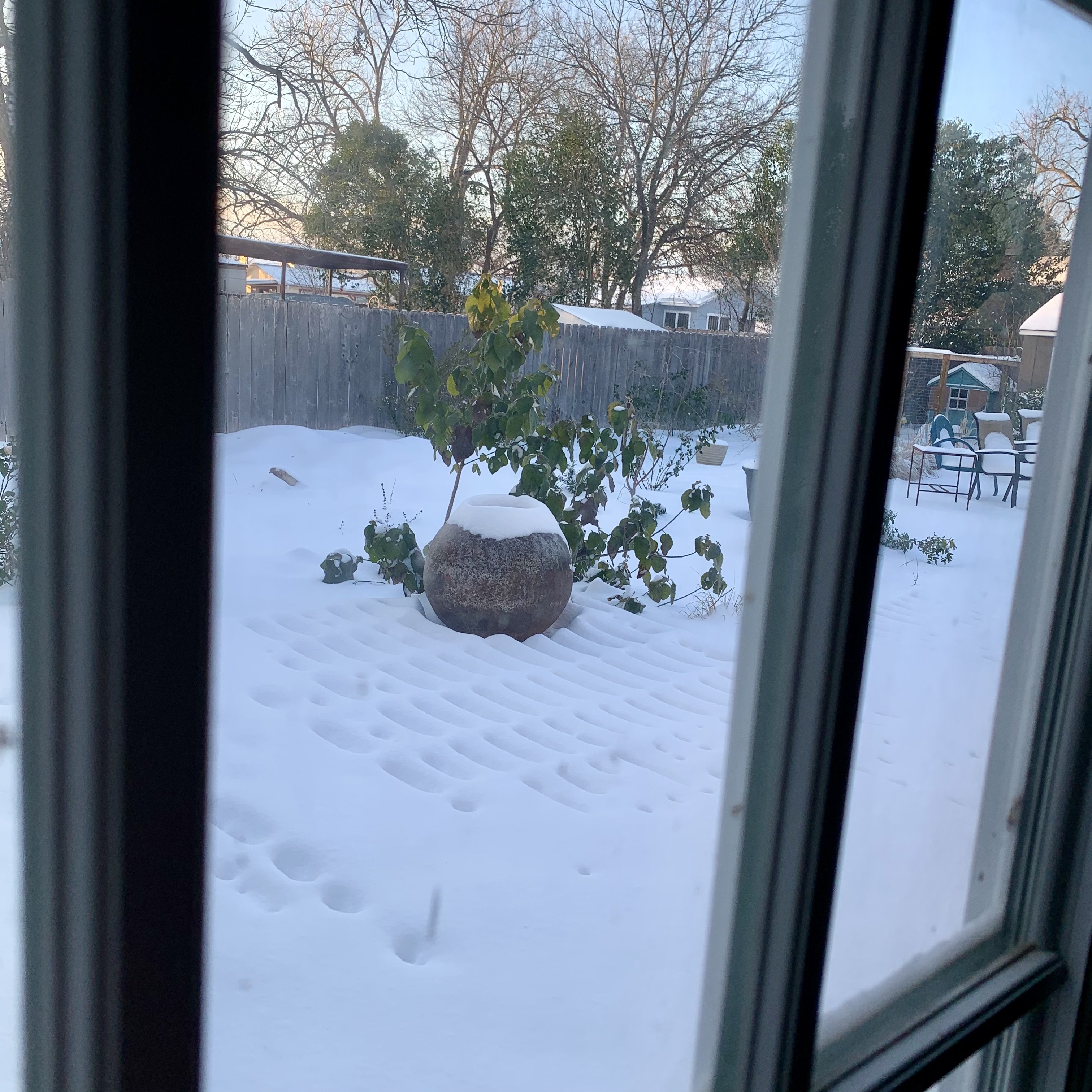 It wasn’t all bad. And it was beautiful. We had a cool family walk at midnight when it first started falling and a couple of days later another one with a snowball fight thrown in. The hollywood junipers in the back looked like a dream dusted in snow. We had enough hot water for a hot bath by candlelight a couple of times and that was amazing. All our friends and family were fine. Neighbors checked up on each other. We’re okay.