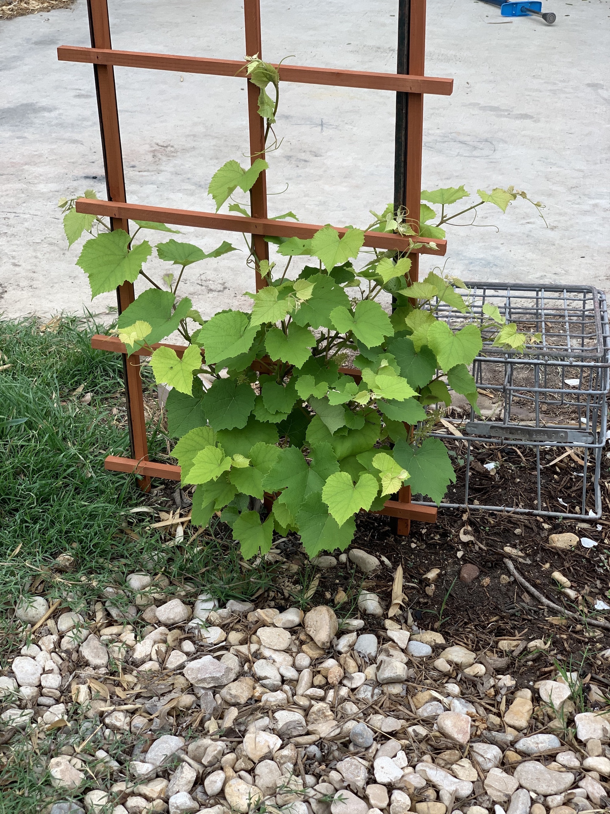 We can’t bring ourselves to take out the dead 7′ senna tree… just in case it comes back later in the year from the roots. But if it doesn’t, I’ve planted some red morning glory seeds at it’s base for the vines to use it’s dead skeleton as a trellis, at least for this year. It’s a smidge as morbid as if someone made my bones into wind chimes after I’m dead, honestly.