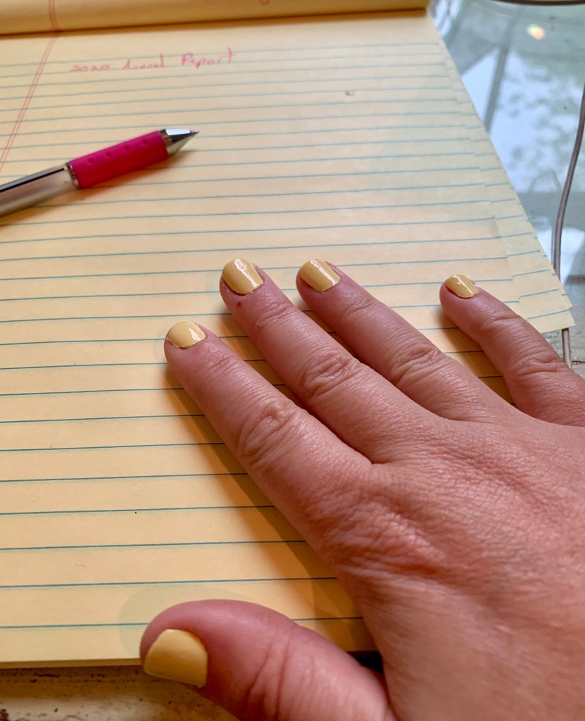 And then finally, in other, other news. I am still periodically painting my nails. This week I decided to branch out from my normal, verging on goth-dark nails, and picked a kinda milky, yellow color. That’d be springlike! And still unique without trying too hard, right?