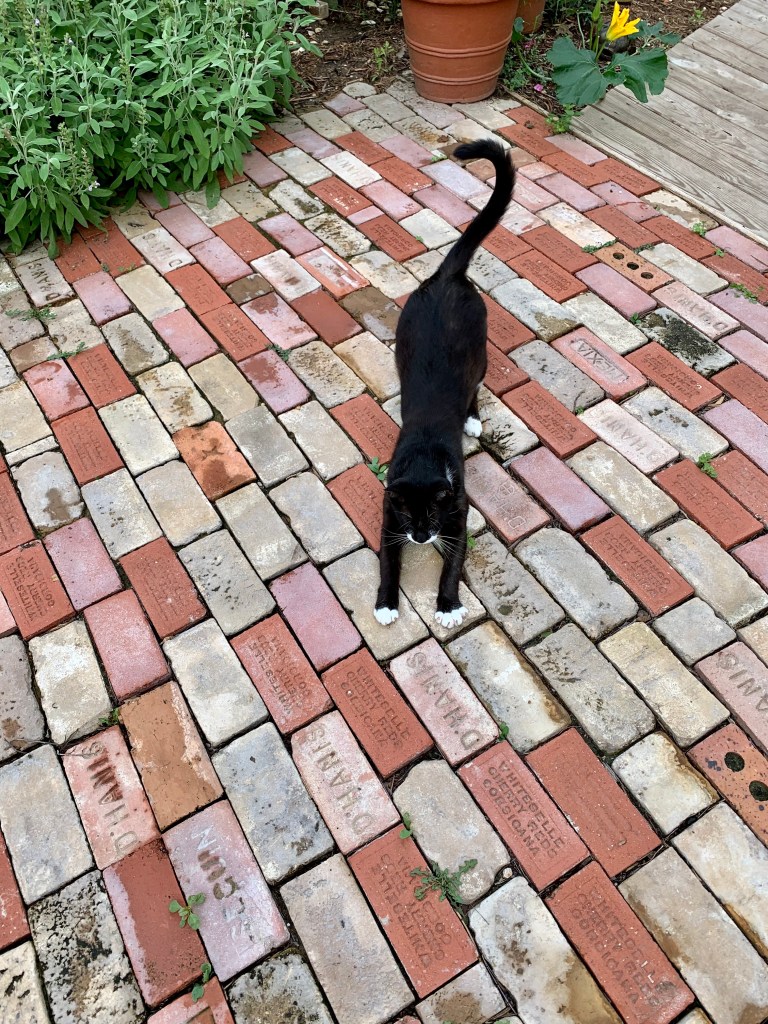 It’s the loveliest damn thing- self seeded in what USED to be the dry creek… that is now just a collection of rocks, mud, and washed out mulch from al the rain. Luckily one of the kids got grounded, so cleaning out the creek is some good ol’ fashioned “go pick up rocks” punishment! Hope they keep talking back all summer!View from the other side, dog for scale. Speaking of pets… here is Alabama, very slowly growing his fur back in! All it took was $300 at the vet and the pecan pollen season to be over. Lacey still looks like a Chupacabra though- but one out of two isn’t bad.