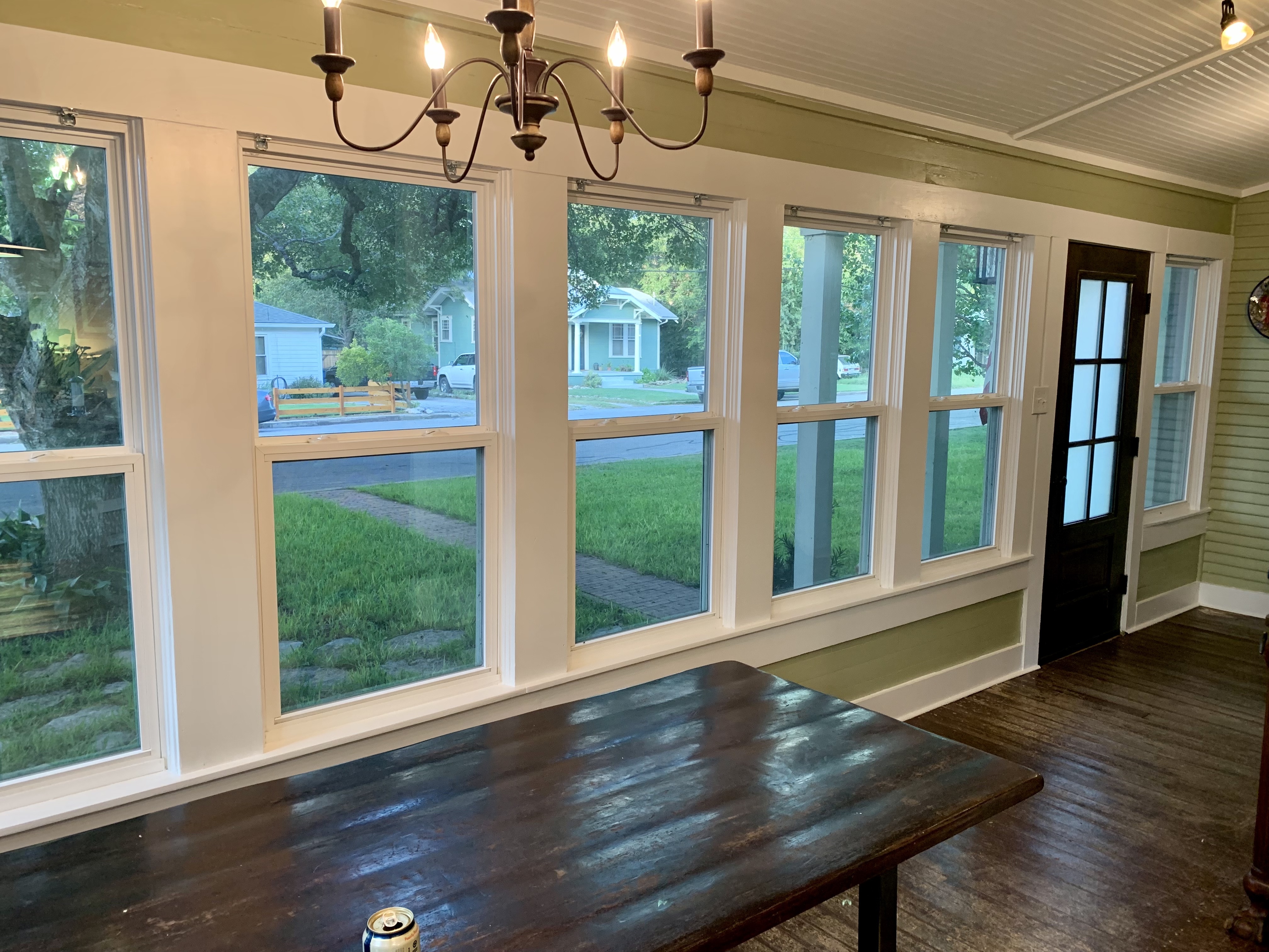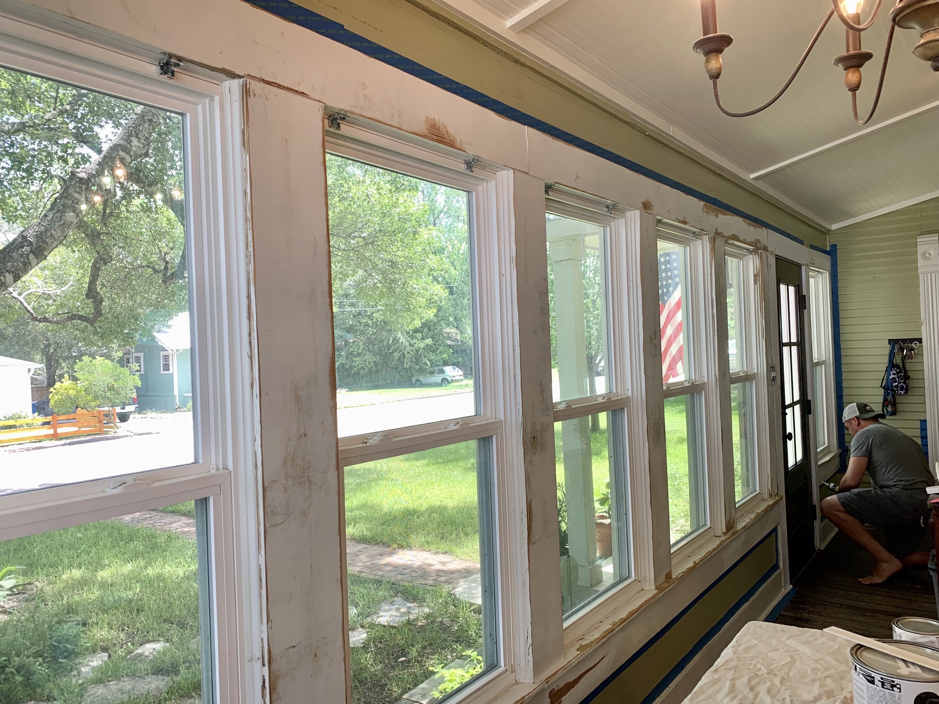 In classic fashion it is impossible for me to take a true “before” picture- but here is after sanding and before we started priming. That room is a closed in porch so it’s 90% window trim, seems like.