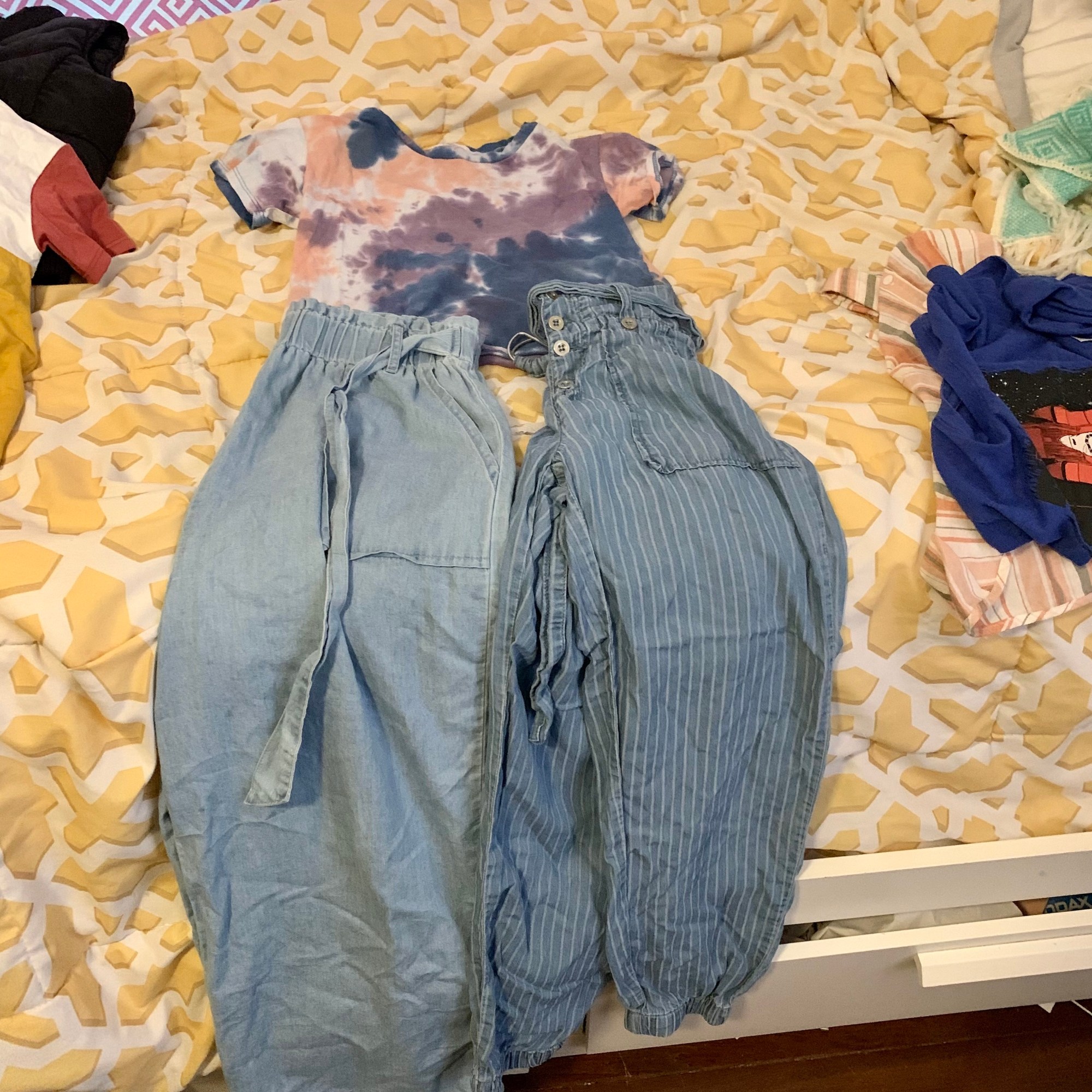 My skillset on outfit creation may be constrained to graphic tee plus cool pants- but damn it if I left it up to them they default to trying to match stripes with other stripes so at least it’s something.