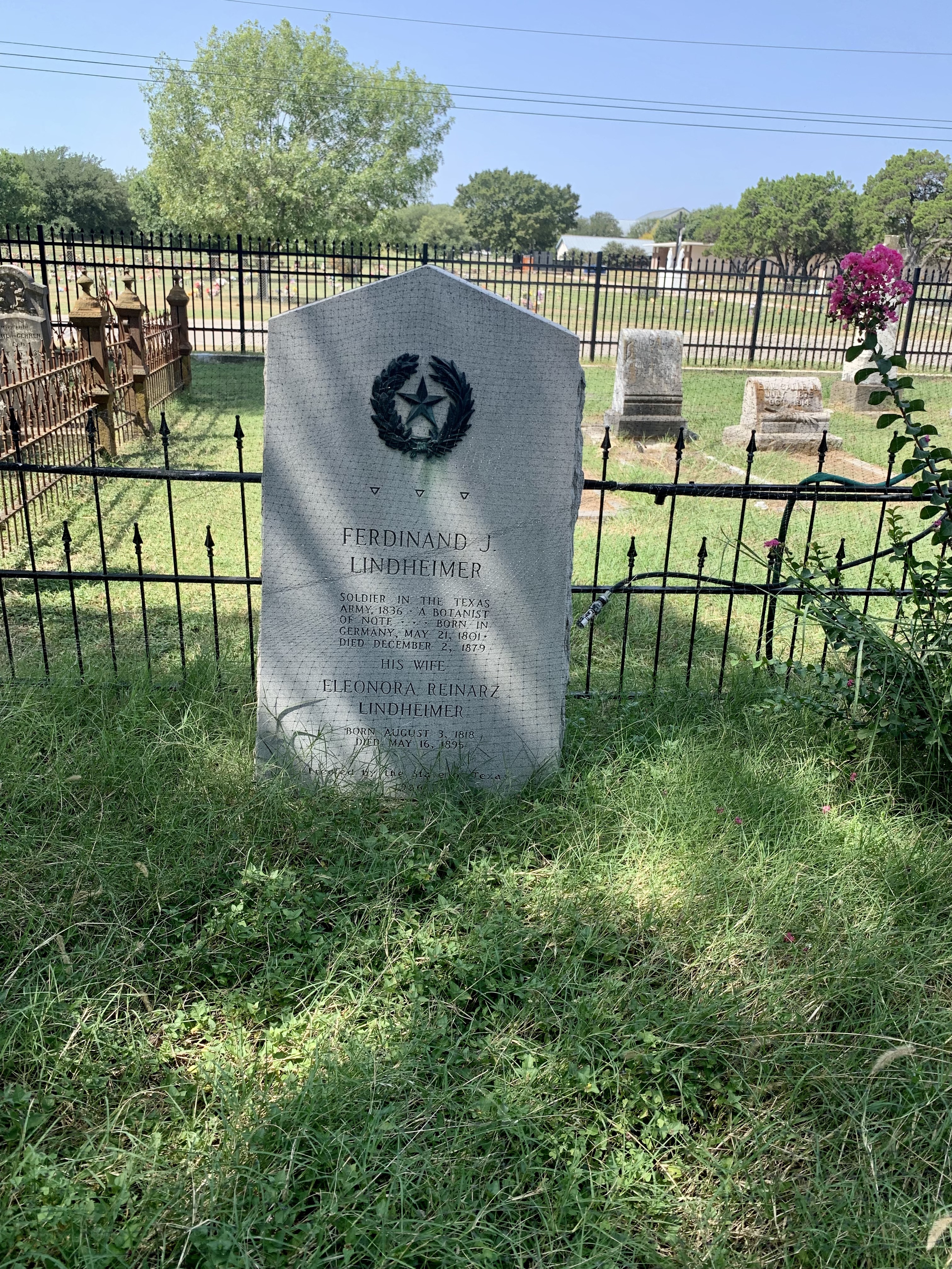 And finally the grave of our local celebrity, Ferdinand Lindheimer- a botanist who helped Prince Carl in his founding of the New Braunfels colony, and who has over 50 plants named for him.