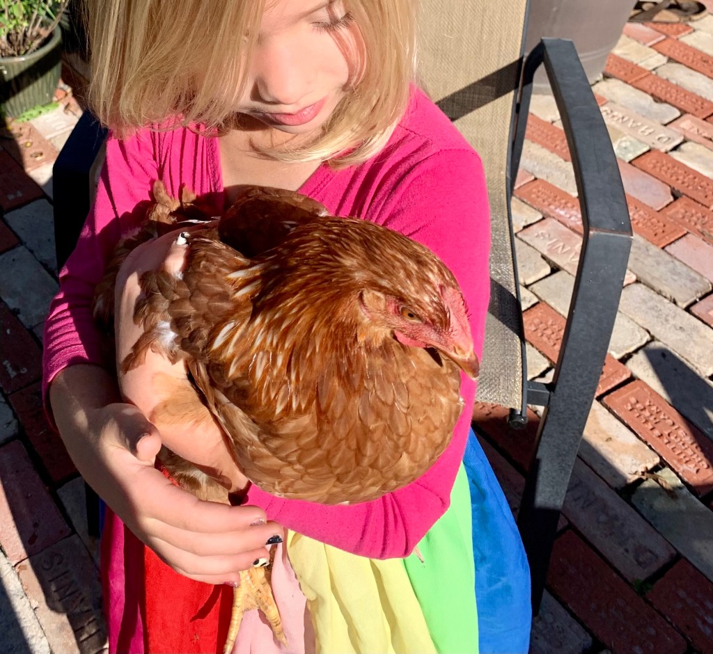 Our old ones were GIANT- I can’t convey how incredibly big they were; they were at least twice the size of smaller chickens, like leghorns. Buff Orpingtons are considered a dual breed- good for meat production and/or egg production. How that played out in real life was like the other two-function product we’re all familiar with: the futon. It’s a bed! It’s a couch! It does both of those badly! So our old chickens were total futons. Big enough to wreak havoc in the garden and probably be fairly meaty were we to eat them, but that meant they also require an exorbitant amount of food. And while they were still laying eggs, they also were not producing a significant amount anymore, and were eating the ones they did lay like goddamn Saturn trying to prevent being overthrown by Zeus. I spent so much time trying to get to the bottom of that (more calcium! More time free ranging!) and finally just thew up my hands and went: sometimes chickens are just awful! So anyway, off to the buy-back program at the feed store they went, for someone to buy as breeders (GOOD LUCK WITH THAT, SUCKERS!) and then bought four production reds pullets (16 week old chickens about to start laying eggs). The children all agreed to this plan as long as I gave them the $5 each chicken brought in from the buy-back program.