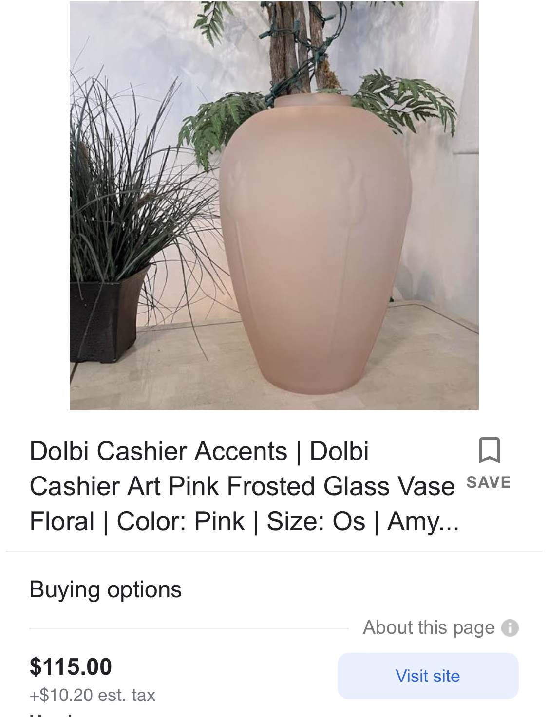 So that up there is a Dolbi Cashier floor vase (floor flowers?) made between 1979 and 1983. Super cool if I can actually sell it… which is the rub to the whole thing. Oh well.