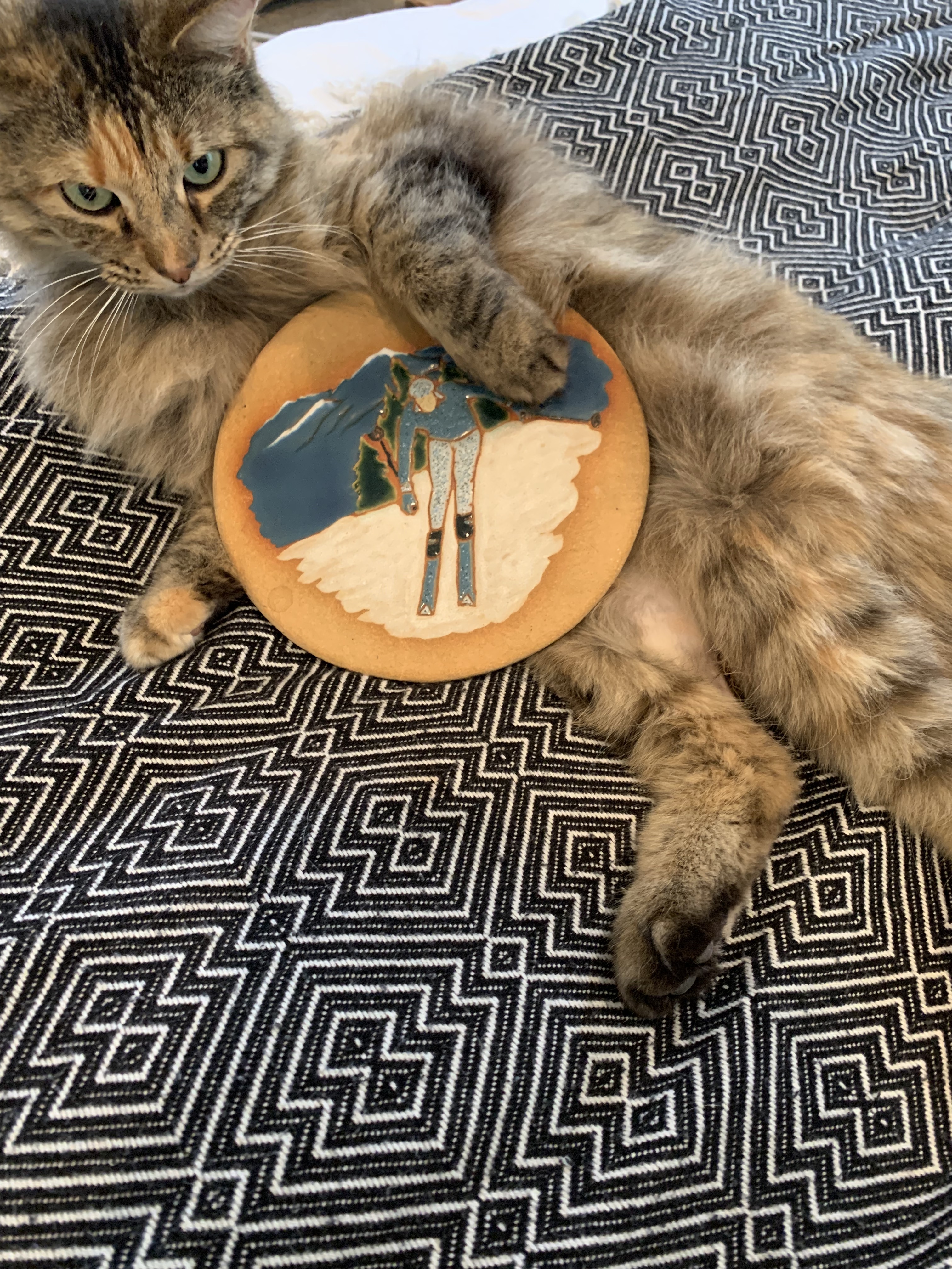 The cat really brought her “bow chicka wow” to that shoot- lol. She was actually asleep and that’s her waking up a bit pissy about the whole thing!