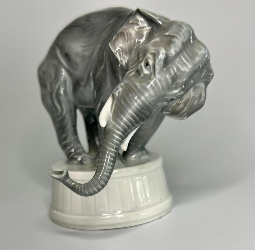 I found this 3″ Rosenthal elephant-on-a-drum figurine at an estate sale for $8 in a sea of other elephant figurines that filled a 6′ table- all the others were not worth anything at all,