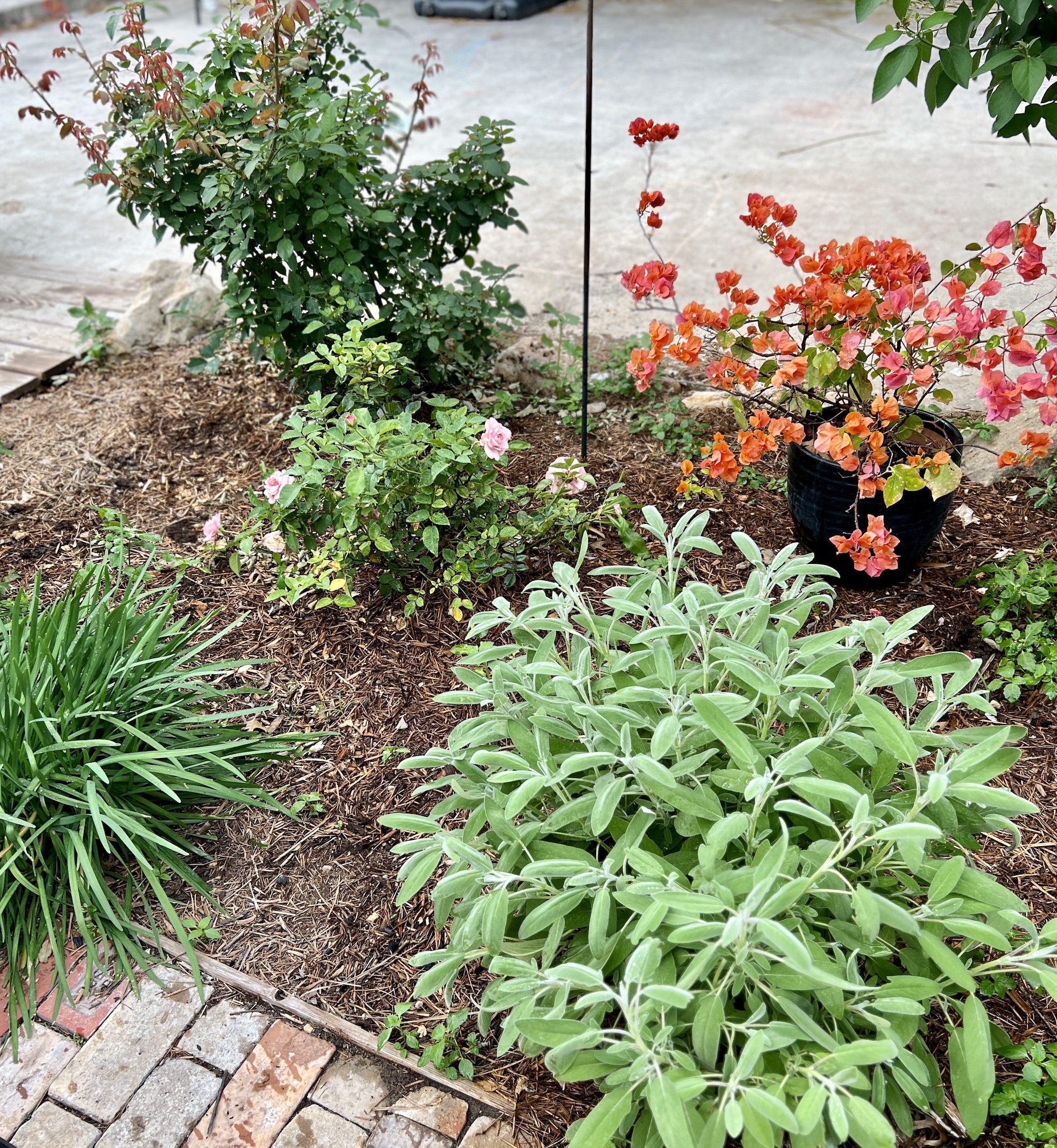 In the front of this picture is the grey green culinary sage- it is the only one that came back this year- the other one didn’t make it.