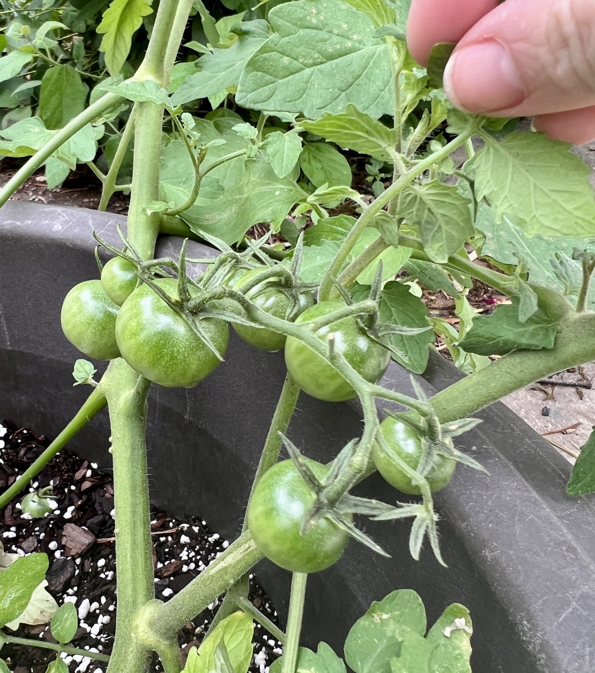 I’ve decided to do the tomatoes in pots this year for no real reason other than I had a couple of empty pots and a dearth of empty spots in the garden- I have 2 Tycoons and 3 Sungold cherries and it’ll be WAYYYYYY too much for those pots come July. Another problem I am forcing future me to deal with. July me will curse April me’s name, I’m sure.