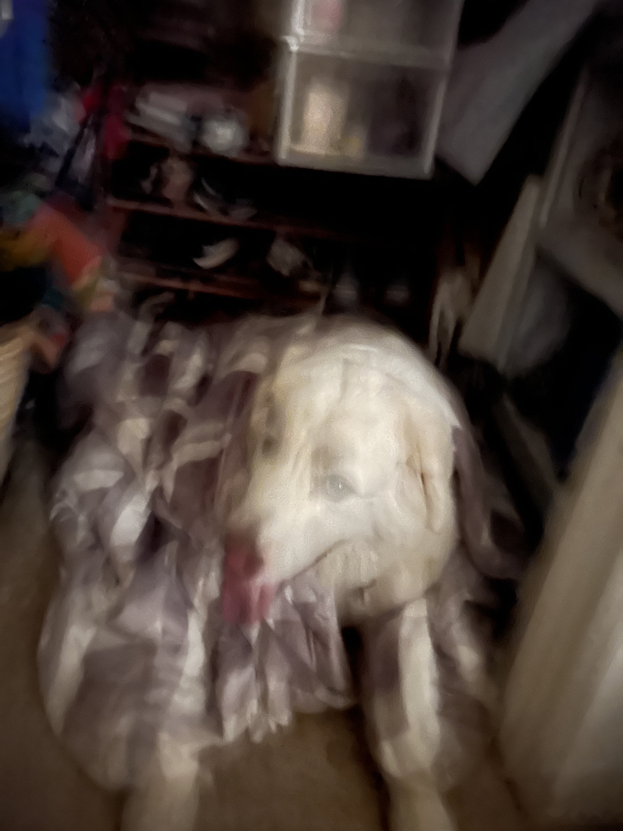 This shot conveys his frantic panting and shivering better than the top pic.