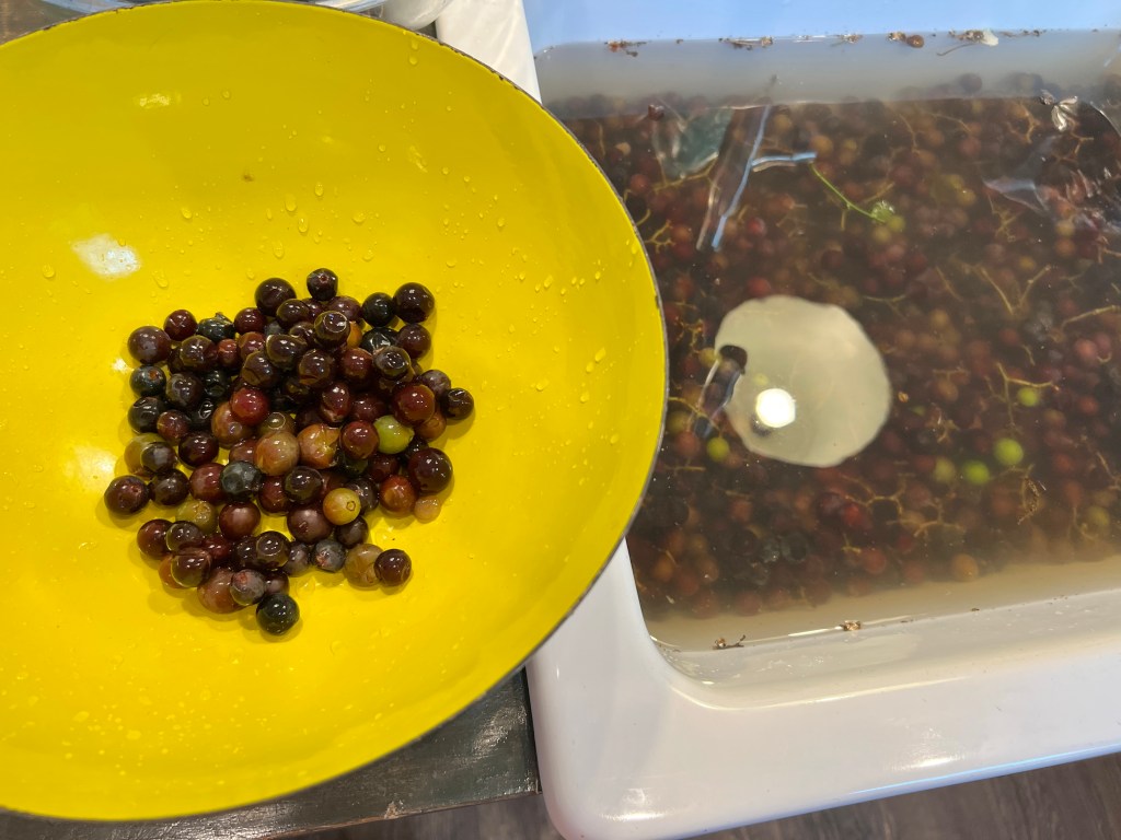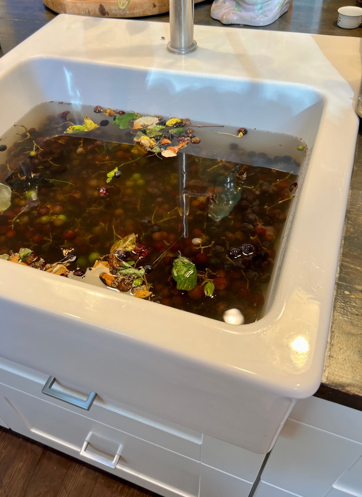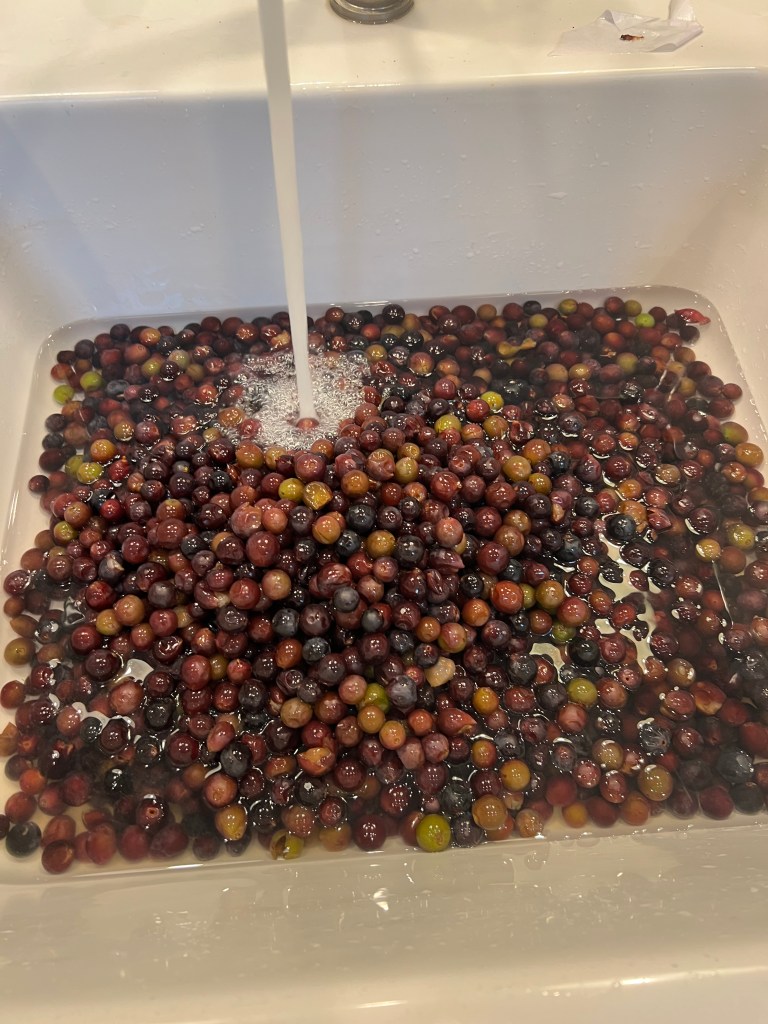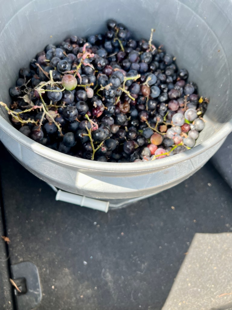 We had multiple 5 gallon buckets harvested. Last year we only were ever able to get 3 gallons… so we’re up to our eyeballs in wild grapes.