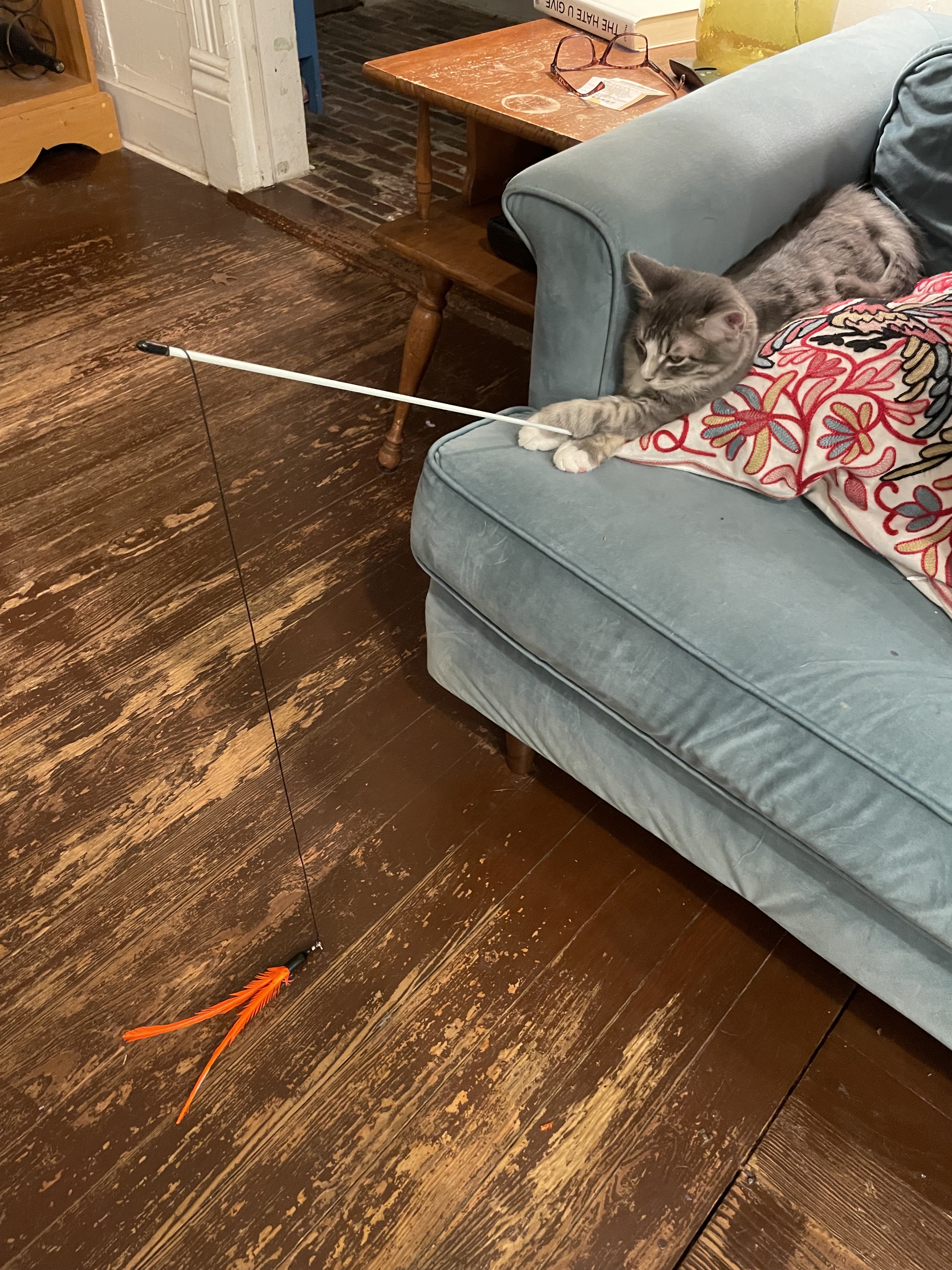 Someone tell the cat that isn’t how this toy works.