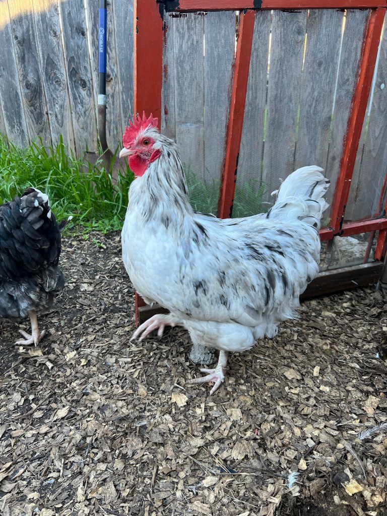 Peep. She He of the gross sinus thing and daily medicine there for a while is confirmed to be a boy. My neighbor said the curved tail feathers, literally giant feet, and thin saddle feathers guaranteed it- which I did know but we doing a really great job in being in denial about. Sigh.