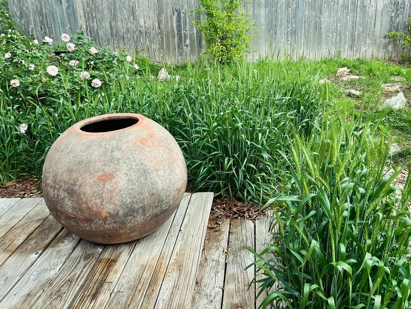 Backyard wheat is the best. It’s easy to grow, super pretty, and I have a german made, stone hand mill (another estate sale find) to grind it into flour here in a few weeks- though you can do it in a food processor too. And I’m most excited to do this with it: