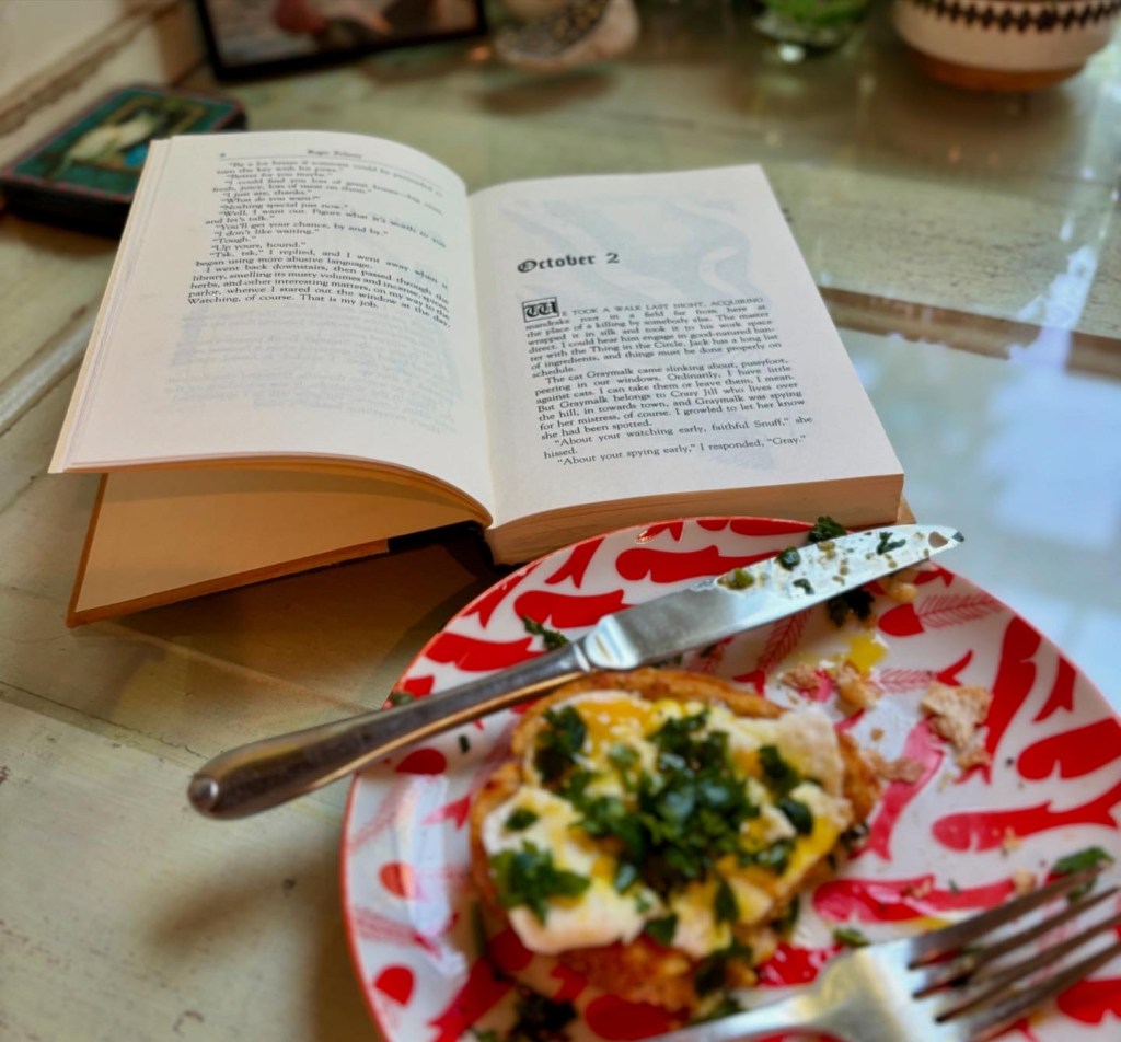 Here it is with damn near the best breakfast I’ve ever had: runny egg on a piece of 5 cheese Texas toast and some parsley because I felt like being fancy. It’s like an old friend, this book. And I mean that in the sanest and most serious way I can express it.