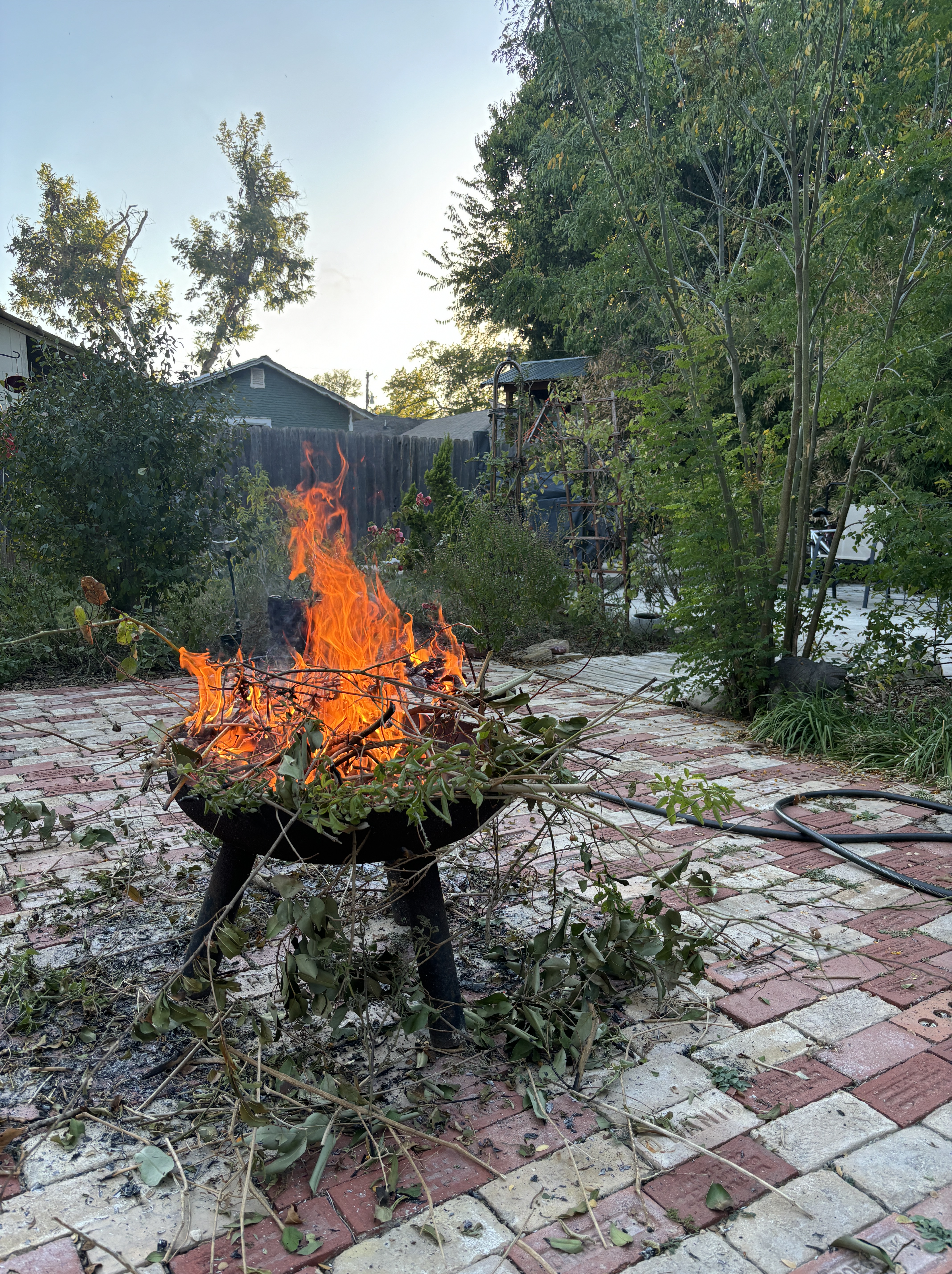 Don’t come for me about air quality. I can’t send bamboo or rose branches to the green recycling center anyway. And three beers and watching a fire for a few hours was really cathartic.
