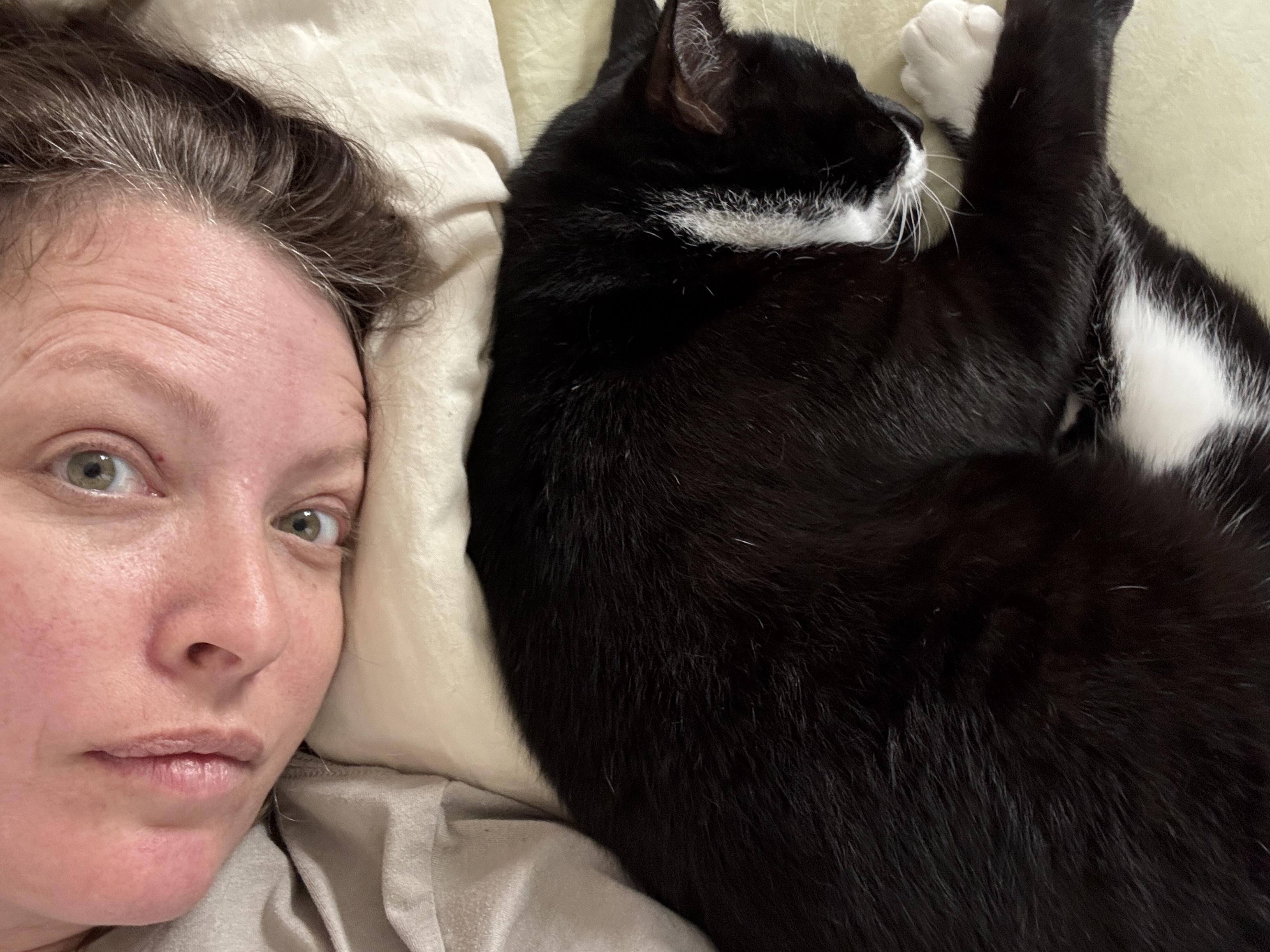 You can see in the pic with Alabama (le black and white one) that my eyelid eczema is down to just one red dot now. It’s not medication that helps but instead the fact that I’m not crying as much anymore.