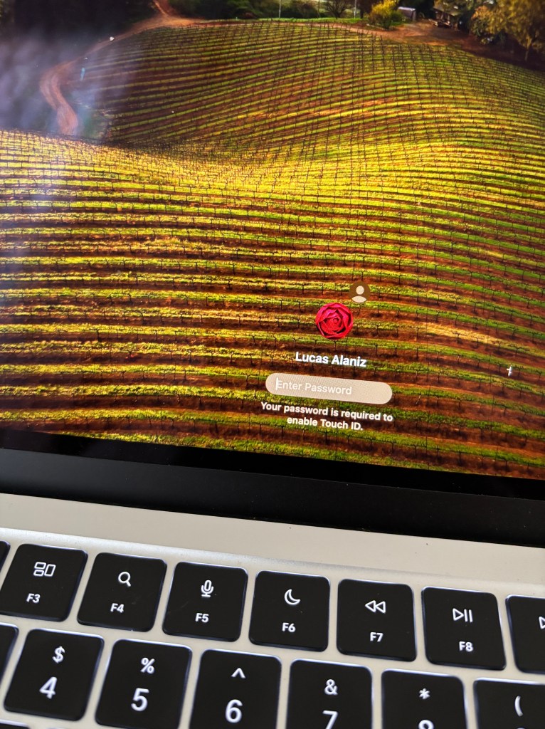 I transferred everything everything when the old laptop died- so apple ID, name, contents, formatting, EVERYTHING transferred, so this one also thinks it belongs to my husband- I haven’t had the heart to tell it.