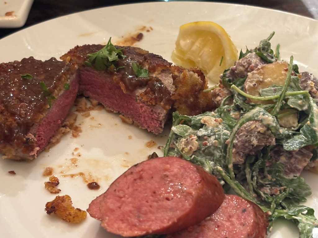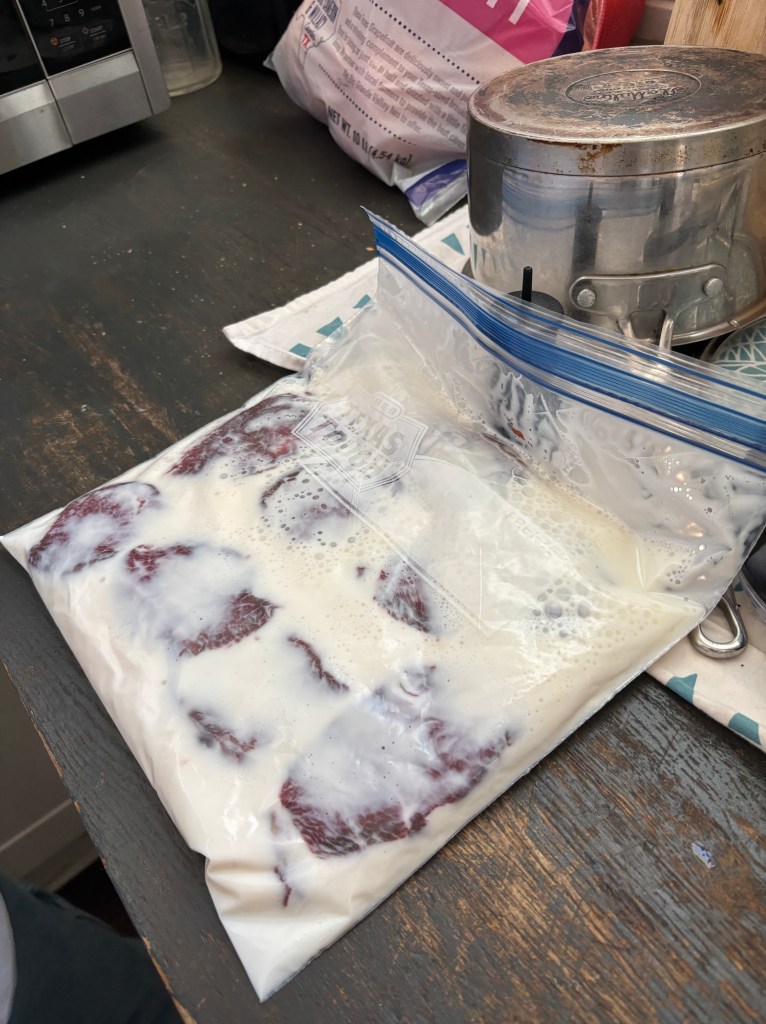 Best part of the deer is the backstrap. So we made venison schnitzel out of it the next week. Pounded thin backstrap cutlets, soaked in buttermilk to tenderize and soak out some gaminess, breaded, then finished with brown gravy and lemons… it was to fucking die for.
