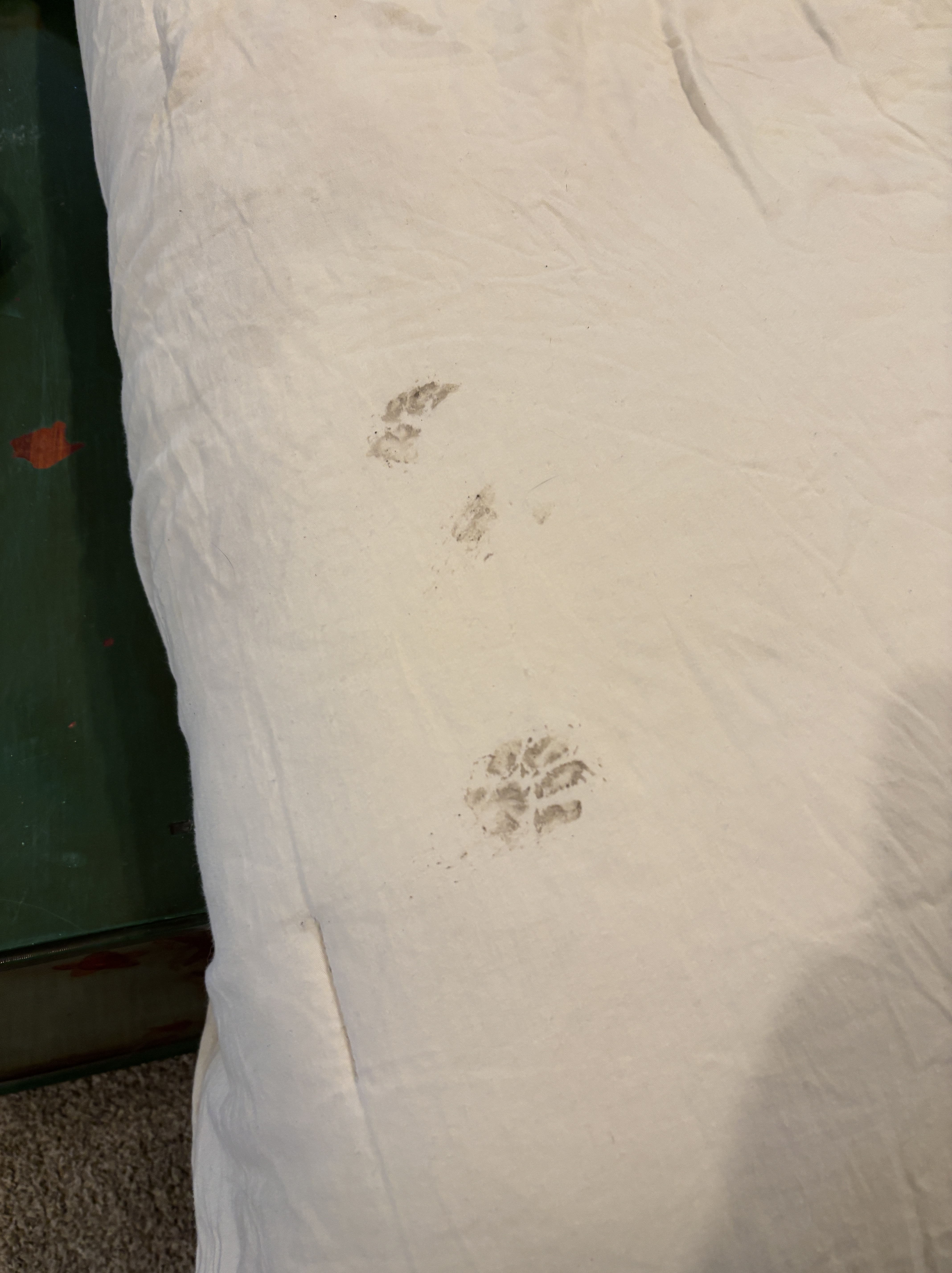 Is this an Agatha Christie book with those perfect fucking muddy paw prints, cats? And which one of you walked on my motherfucking throat in my sleep?! My money is on Asher.