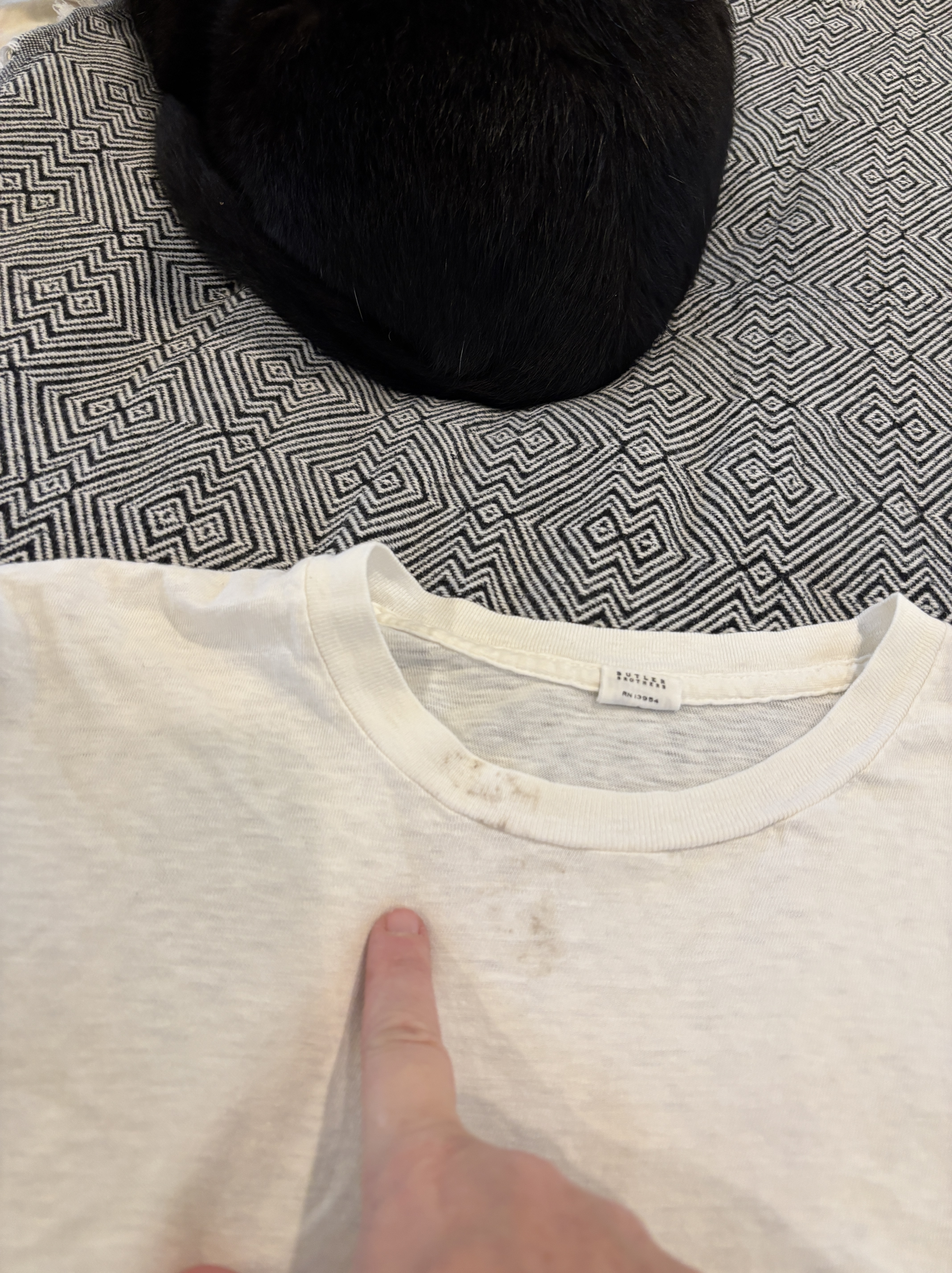 It’s rained twice in the last few weeks so I woke up a few times with the shirt I was wearing to bed and my comforter looking like this: