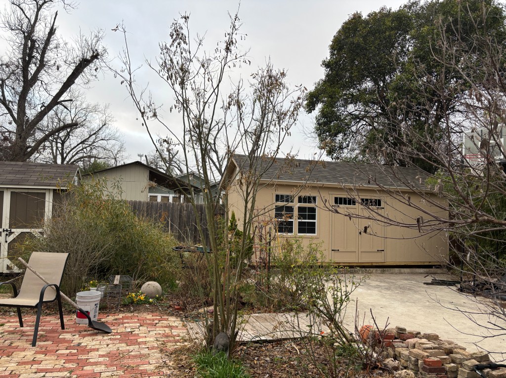 In other “way to many steps to this shit” things: I had the storage room installed in the back. Should the roof have been oriented the other way for ease of adding on a carport? For sure. That was why Lucas and I had never had a prefab one built there before. But considering how long this bathroom is taking to finish up there was NOOOOO Way I was doing dealing with any more custom construction. So. I used most of my Quarter 4 bonus to build a big ass shed in the backyard.