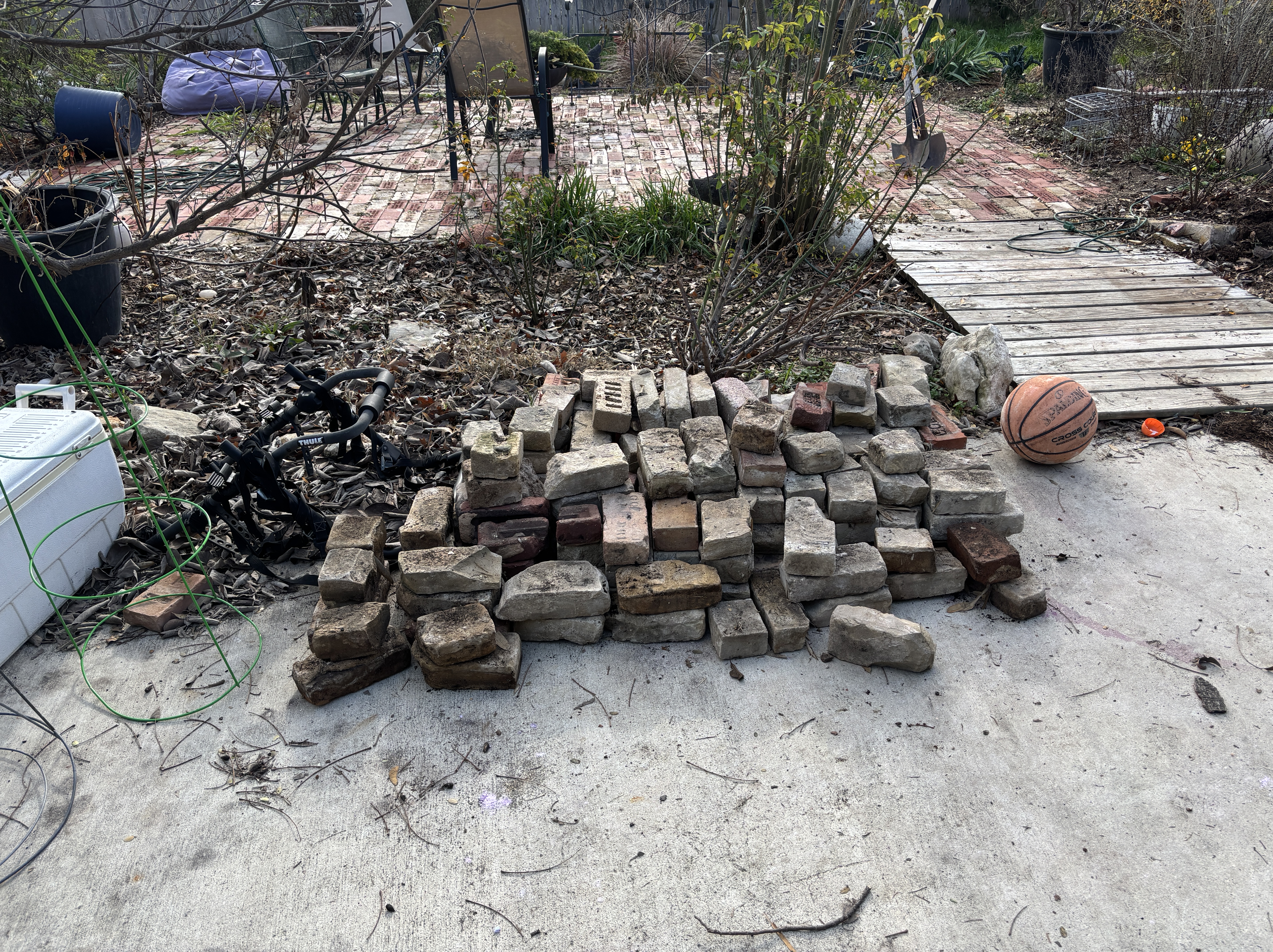 The installers had to cut down a ton of bamboo too, so I have to figure out what to do with that. They don’t take bamboo for green waste recycling, so I may have to chop it up and burn it, but fun fact- bamboo pops and explodes when burned so that’ll be fun. It’s expensive and would require a trailer to get it to the city dump… I’m letting future me figure that one out, I’ve decided.