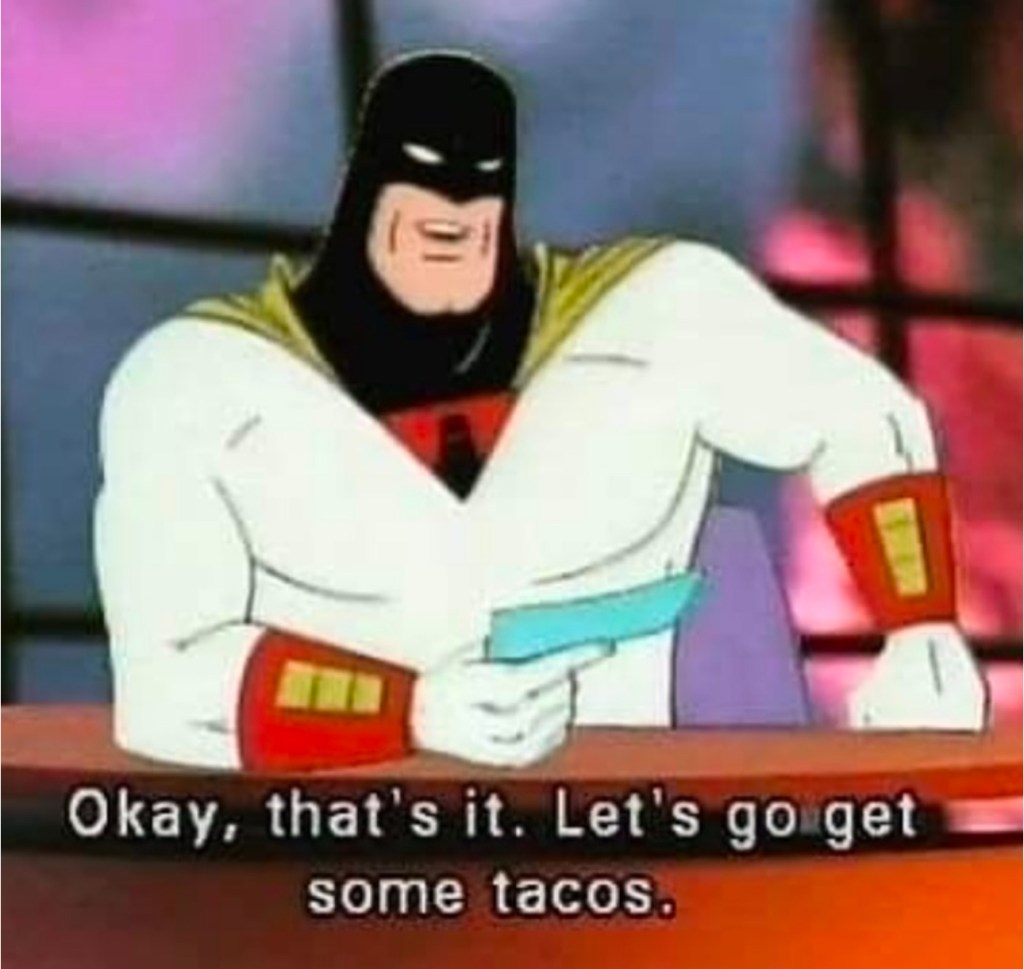 Okay, that’s it. Let’s go get some tacos, indeed.