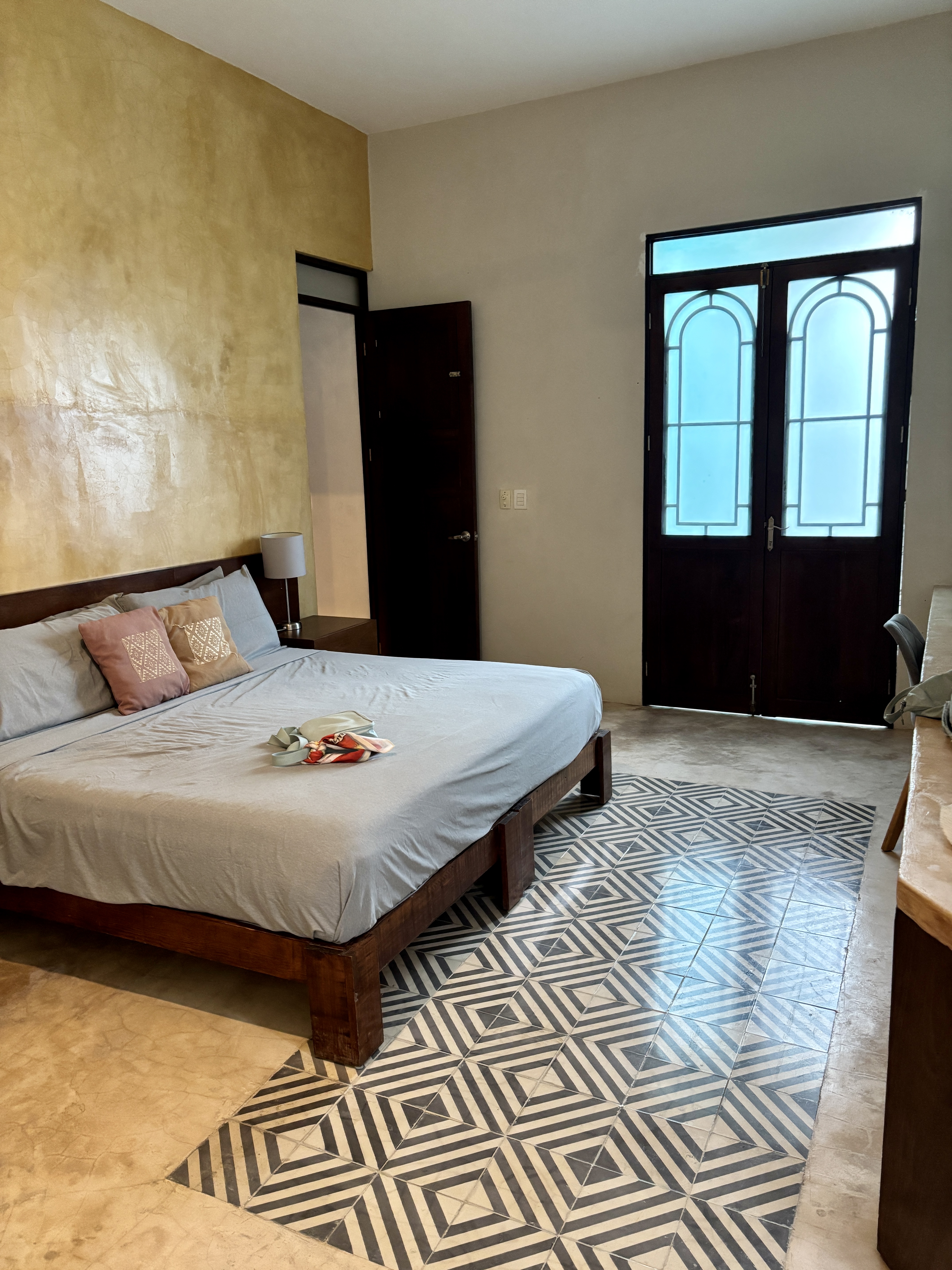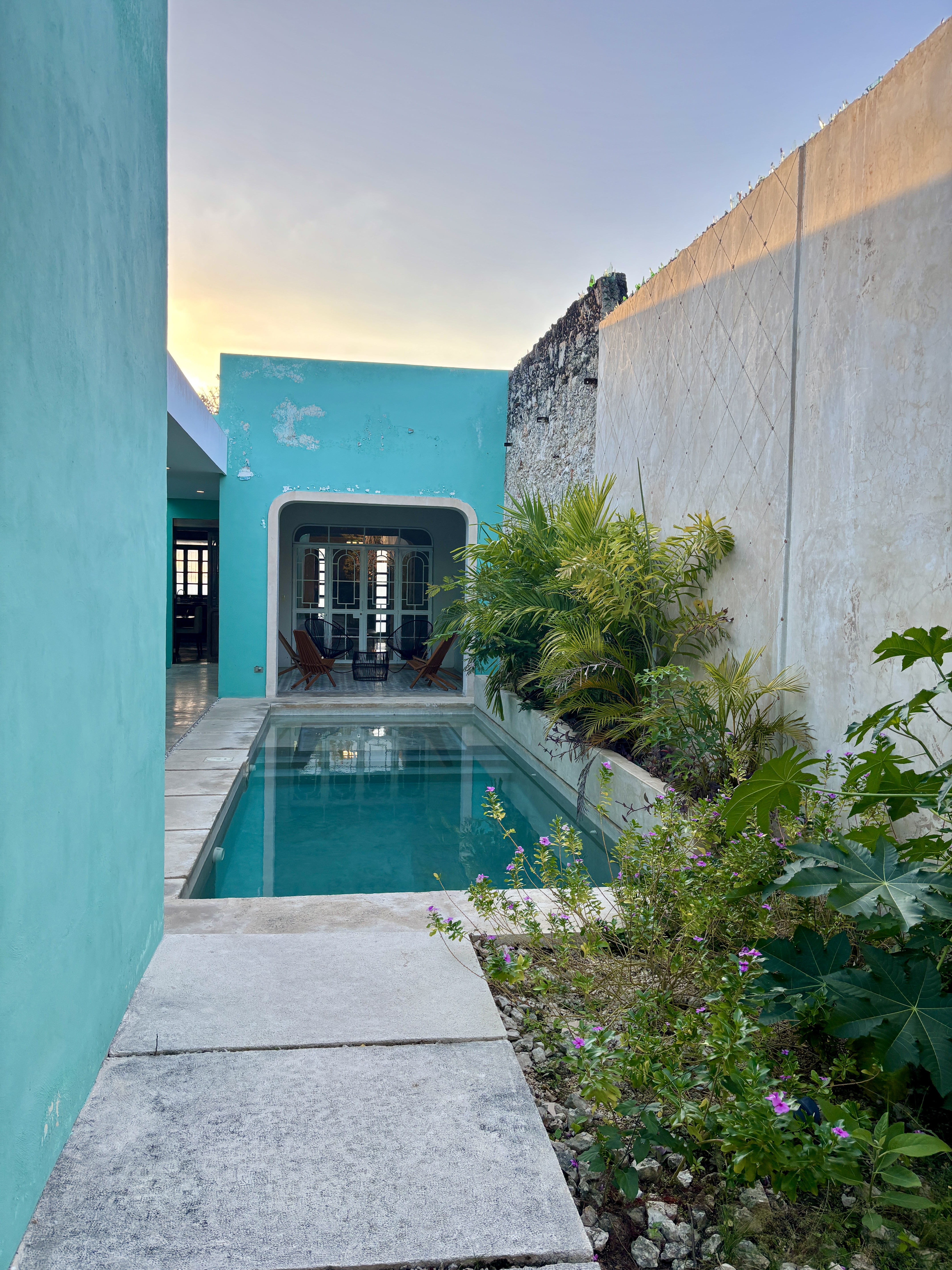 We swam in a cenote. And crisscrossed the Yucatan Peninsula together. Had good meals and good laughs and good talks and good days and good nights and good times. Our next place to stay was picked by my friend and it was spectacular where we had our own stand alone little villas, hidden away behind a simple exterior, and it was lovely. And did, come to find out, also have hot water.