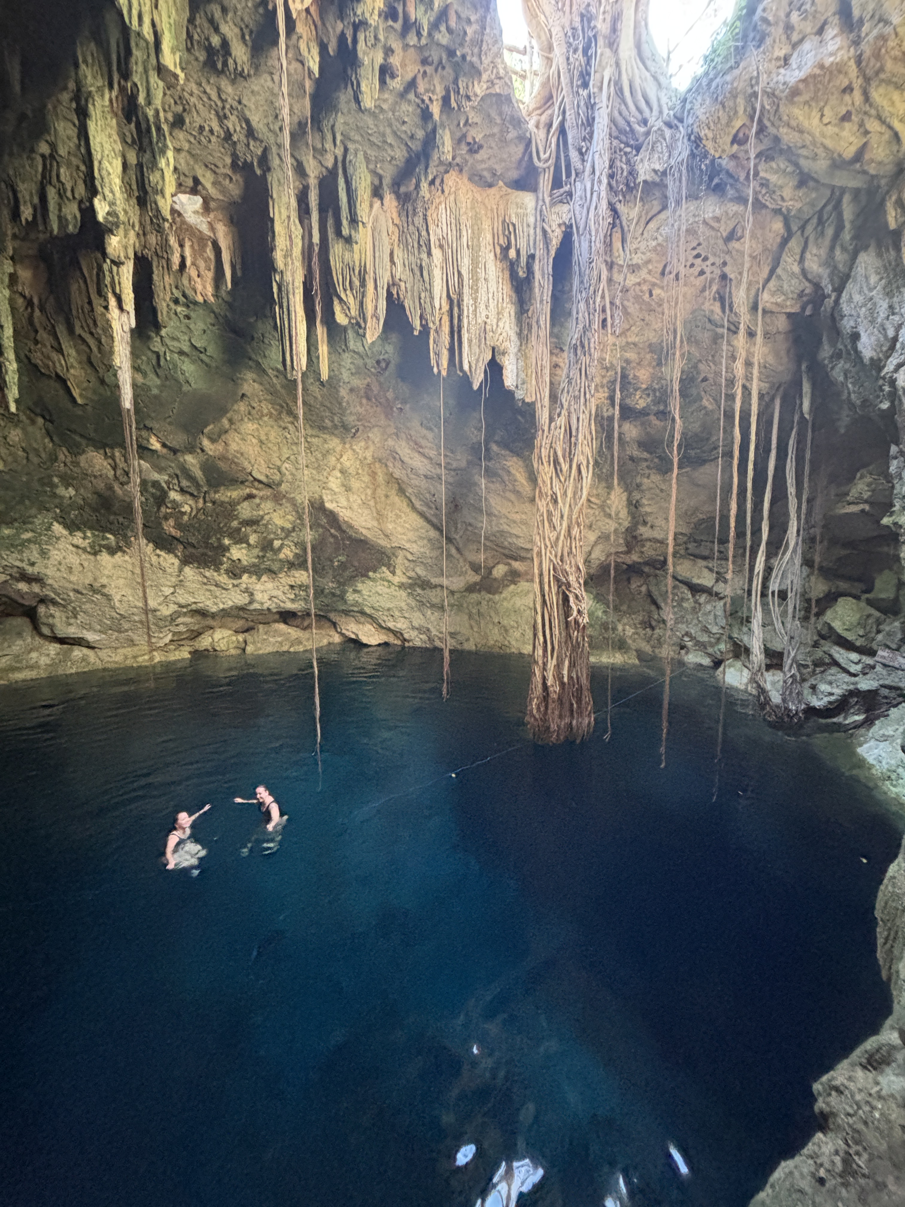 Us in the cenote. Let me be clear that underwater balancing on the rope across it was not really the pose to have taken for posterity… but whatever. It was amazing.