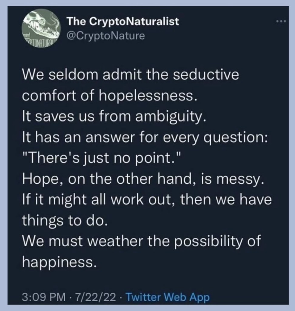 I get the Pandora’s Box myth, now. Why hope was in the box with the terrible things. It is the worst.