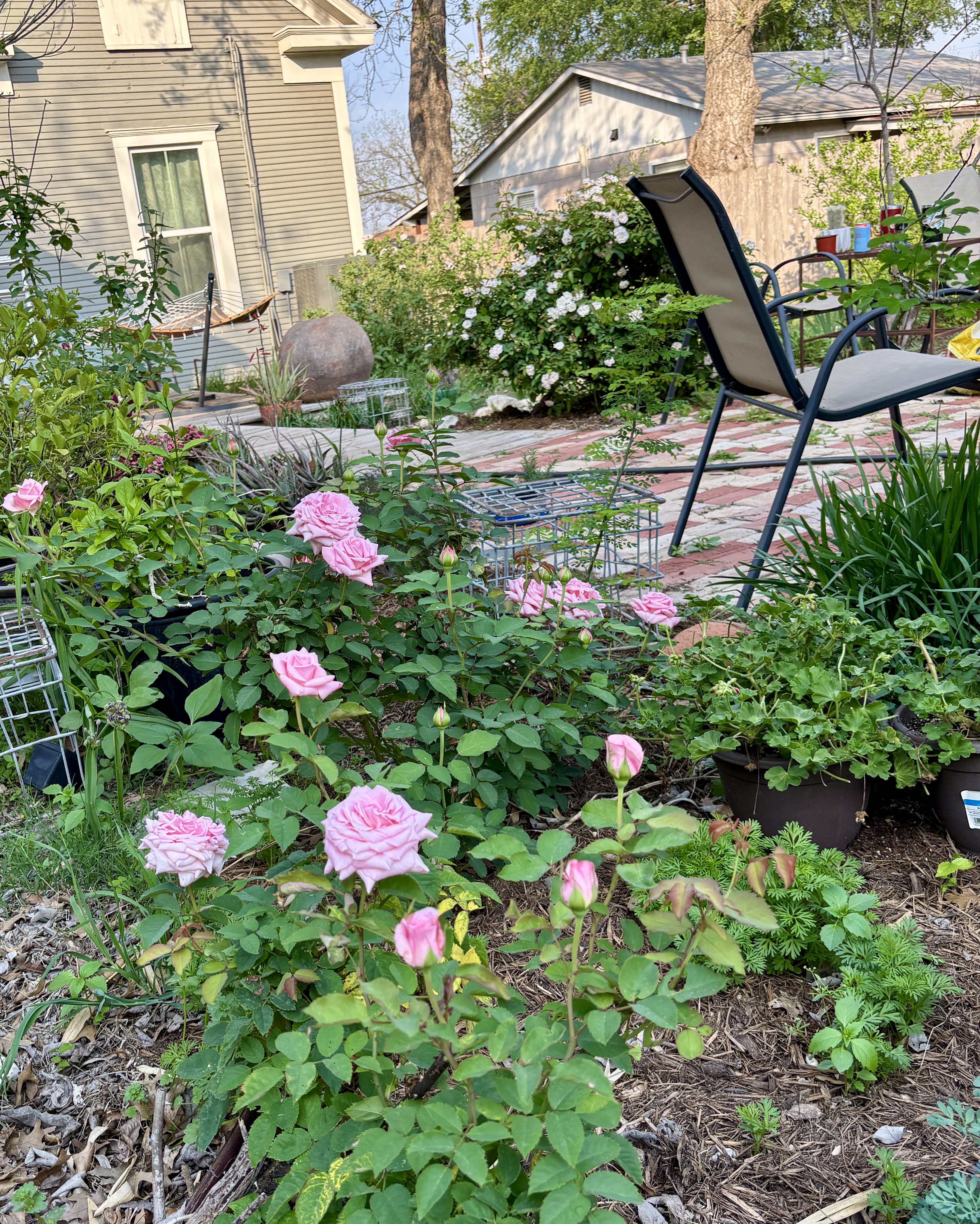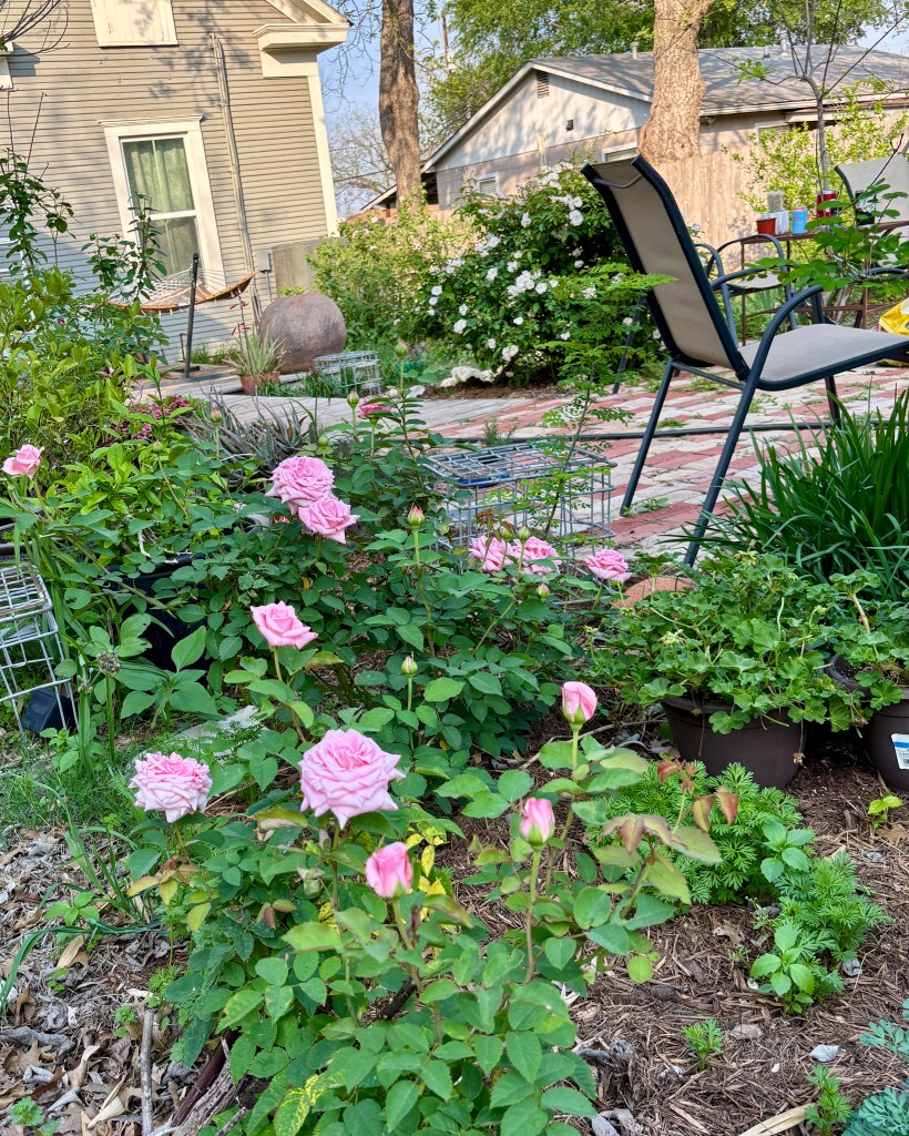 The roses ball (hold moisture, turn brown, and don’t open properly) if the buds get wet, so cutting them and bringing them in is the only thing to do when a storm is a comin’. I’m not mad about it.