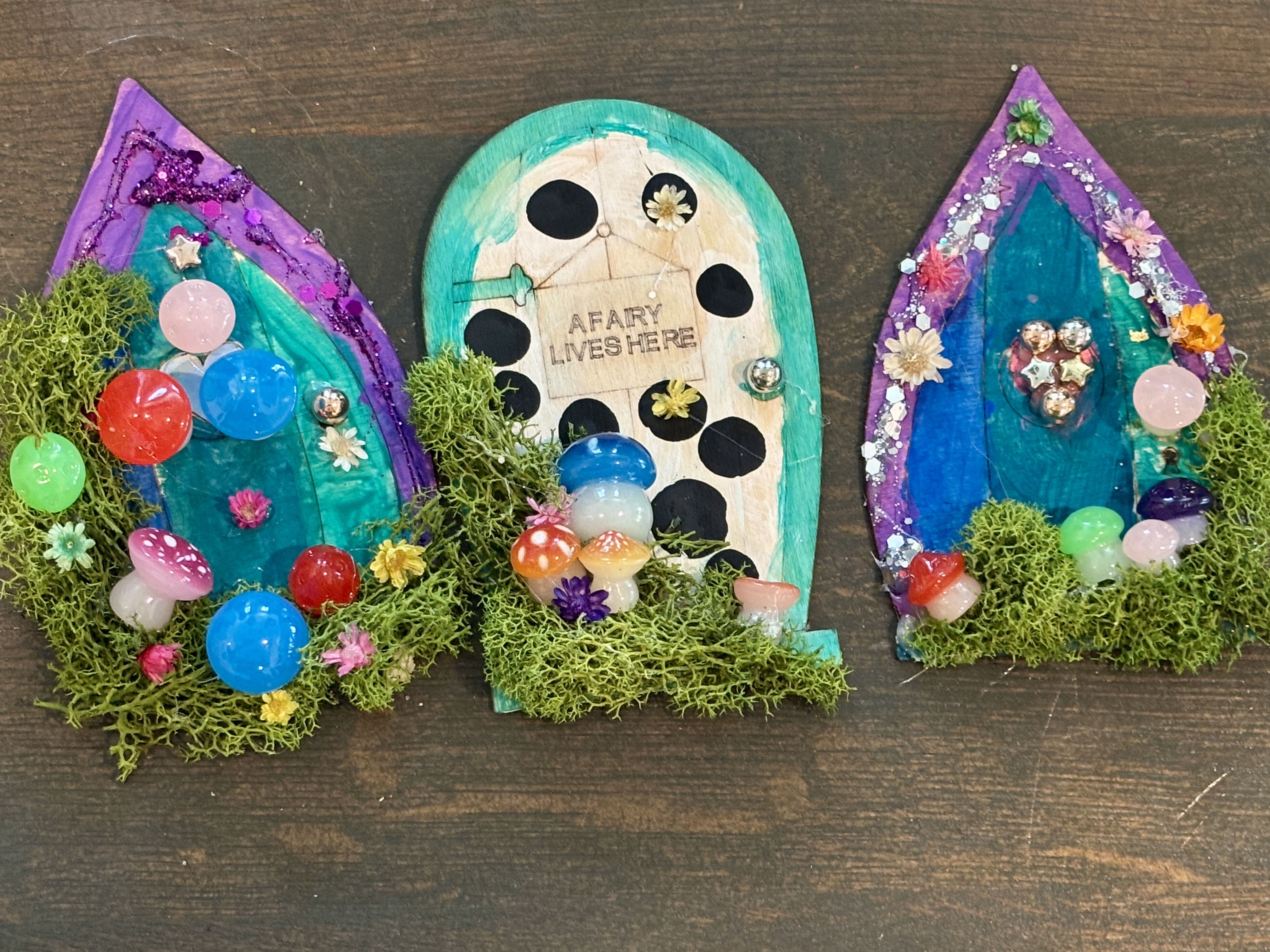 The flowers are still blooming. The weather is nice. I mowed the grass. My oldest is sick, but I made her soup and meals of rice and roast chicken and jarred up some iced chamomile tea for her to have at the ready and stocked her fridge and did some of her laundry and she’s starting to feel better and that’s nice to still mother her like that. The cats are soft and cuddly and my aunt is back in town and brought my cousin’s kids with her- and so my younger two and they have been hanging out a lot. They’re good cousins to each other, though I know the official term is second-cousins. I took them to the local crystal shop and they made fairy doors yesterday.