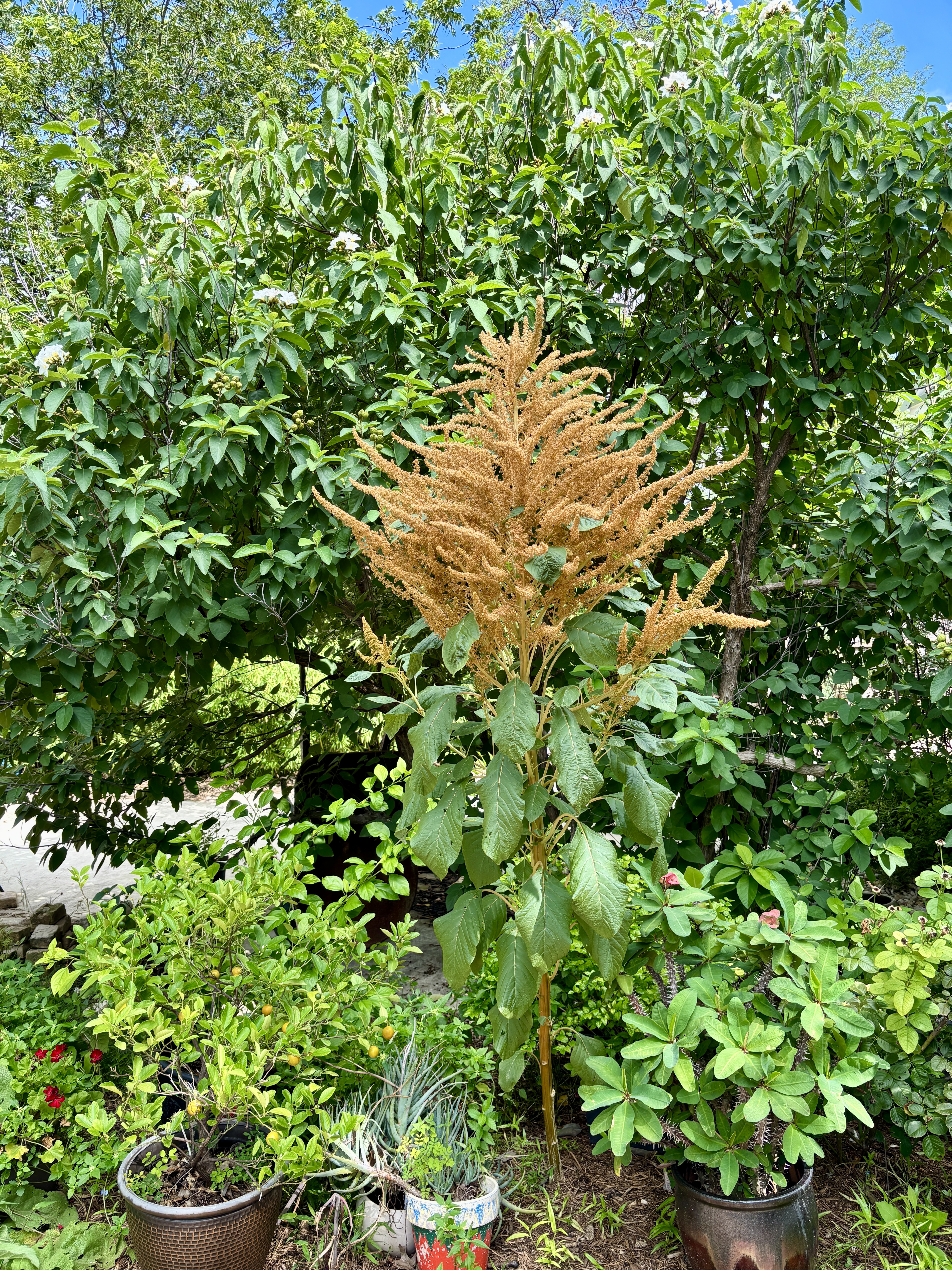 This thing is MASSIVE- my goodness. It stands over 5′ tall and that flower pannicle is over 2′ wide.