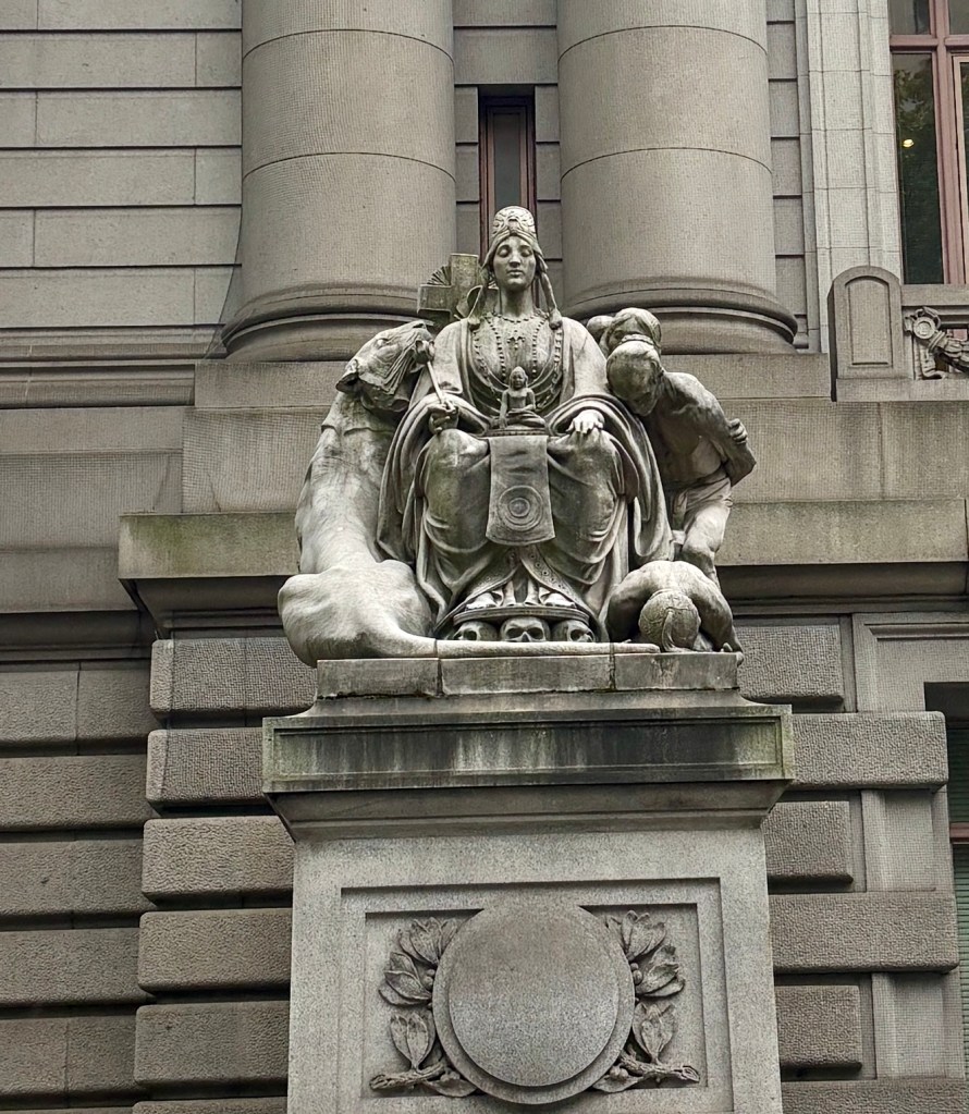 That statue though, amiright? (It’s the old commerce building and the statues on the corners are supposed to represent the 4 continents… they’re from another time for sure, but that is a pretty badass statue if we can just take it out of context.)