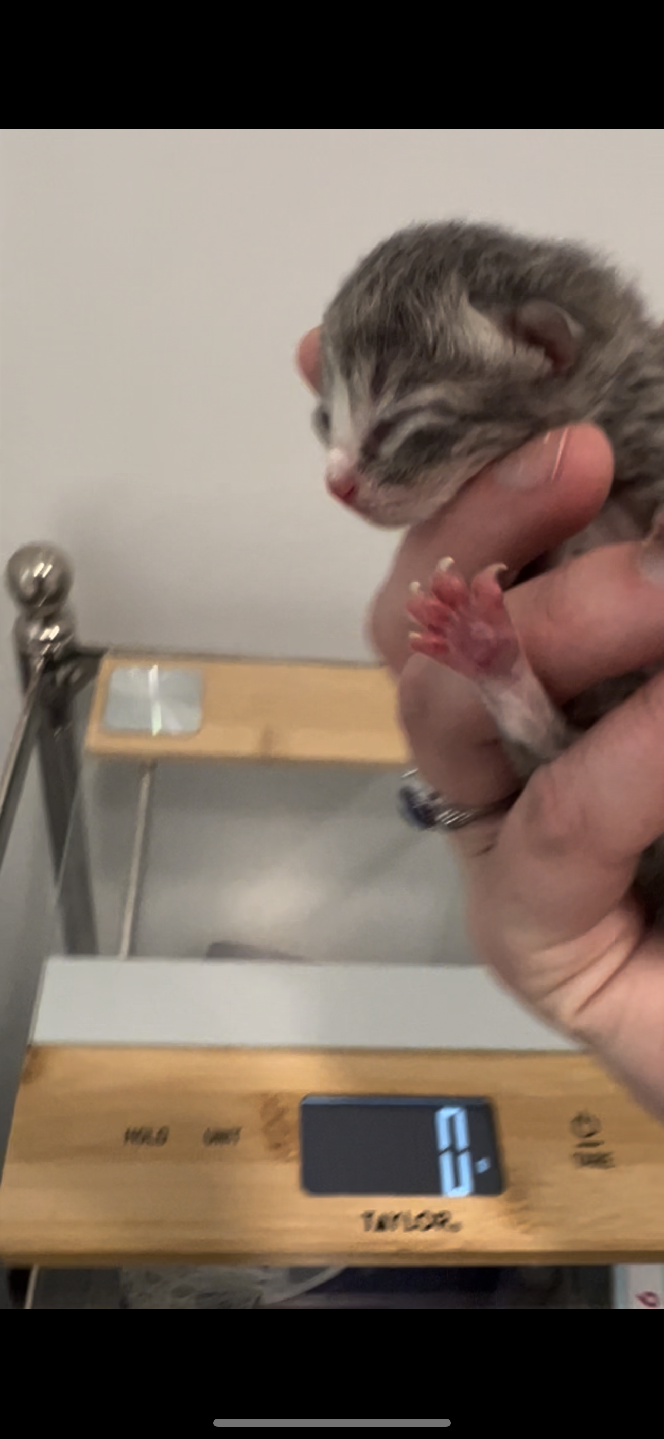Here is a fun thing, though. When you adopt a kitten from your friend that does foster work, and he was from a litter a feral cat had at her house, you get reminded of when your cat’s birthday is because she was there and weighed him mere hours after he was born, and took a picture of said event and then sent it to me this week!
