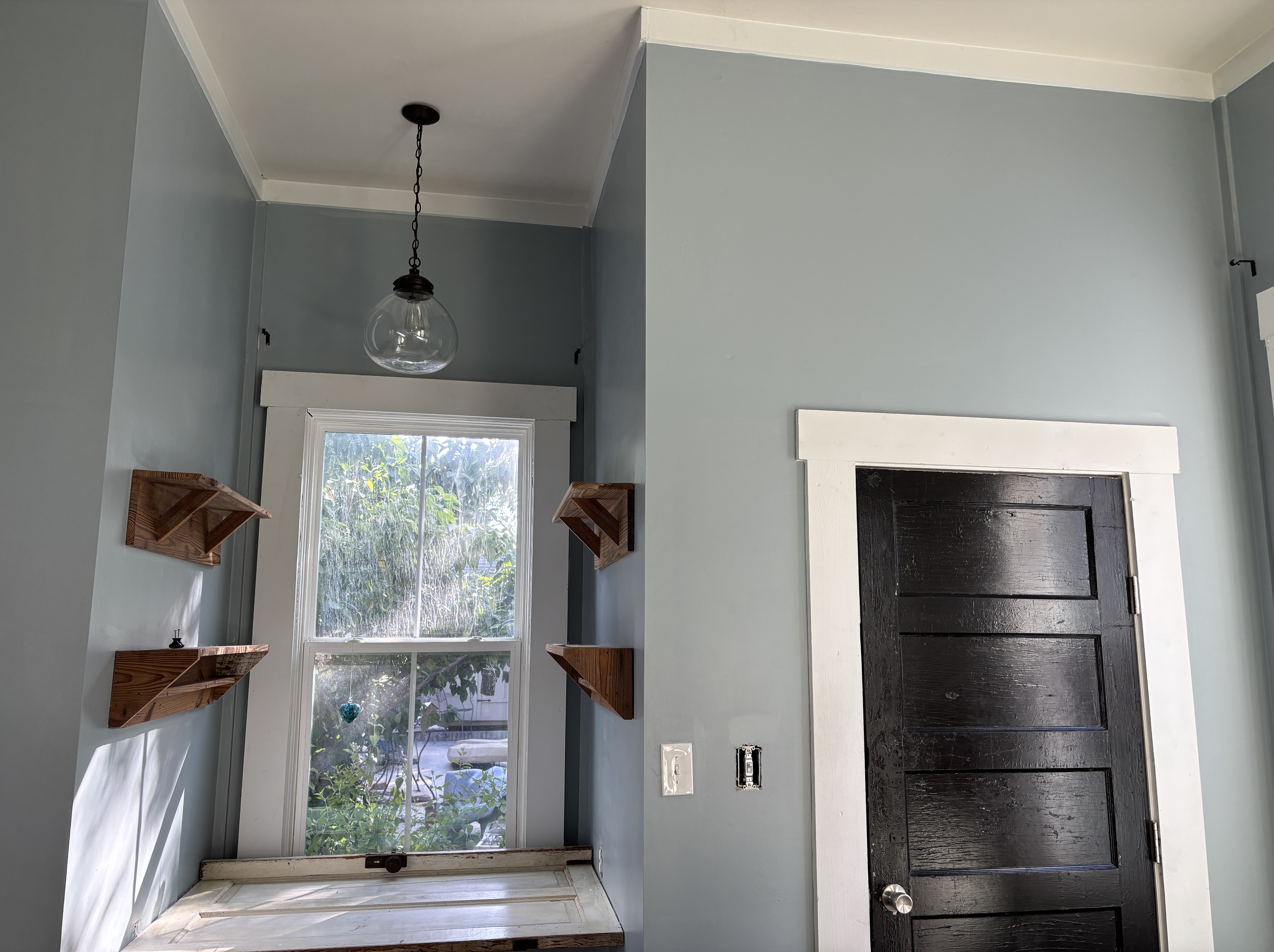 (the barn door goes to the bathroom, it’s just set in front of the french doors to get it outta the way.)