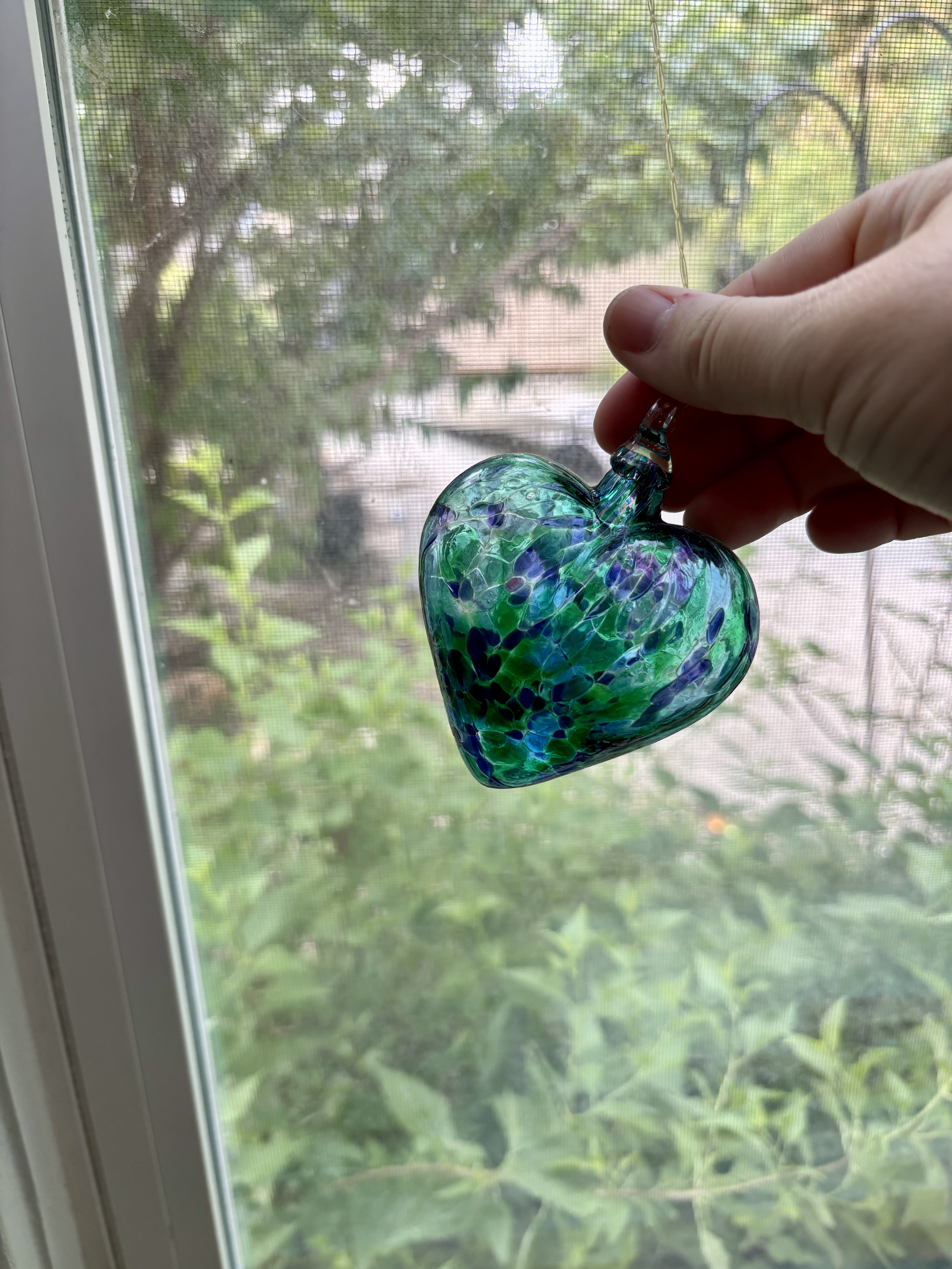 Oh wait- that isn’t finally- one more thing. Here is the blue and green blown glass heart I have hanging in front of that window.