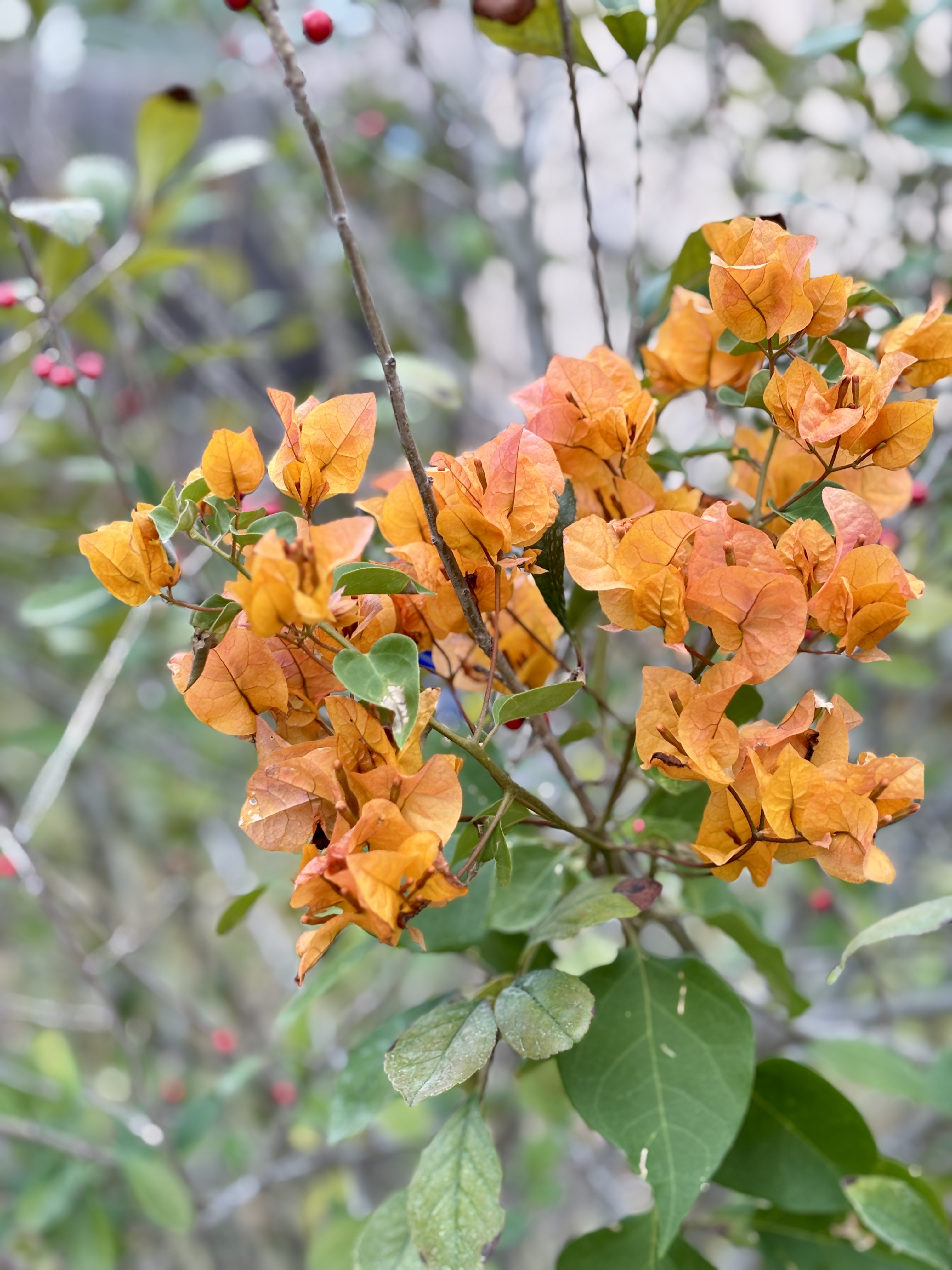 All of my bougainvilleas are orange and slightly different shades and this makes me very happy. Lucas gave me two of these. They are very treasured.