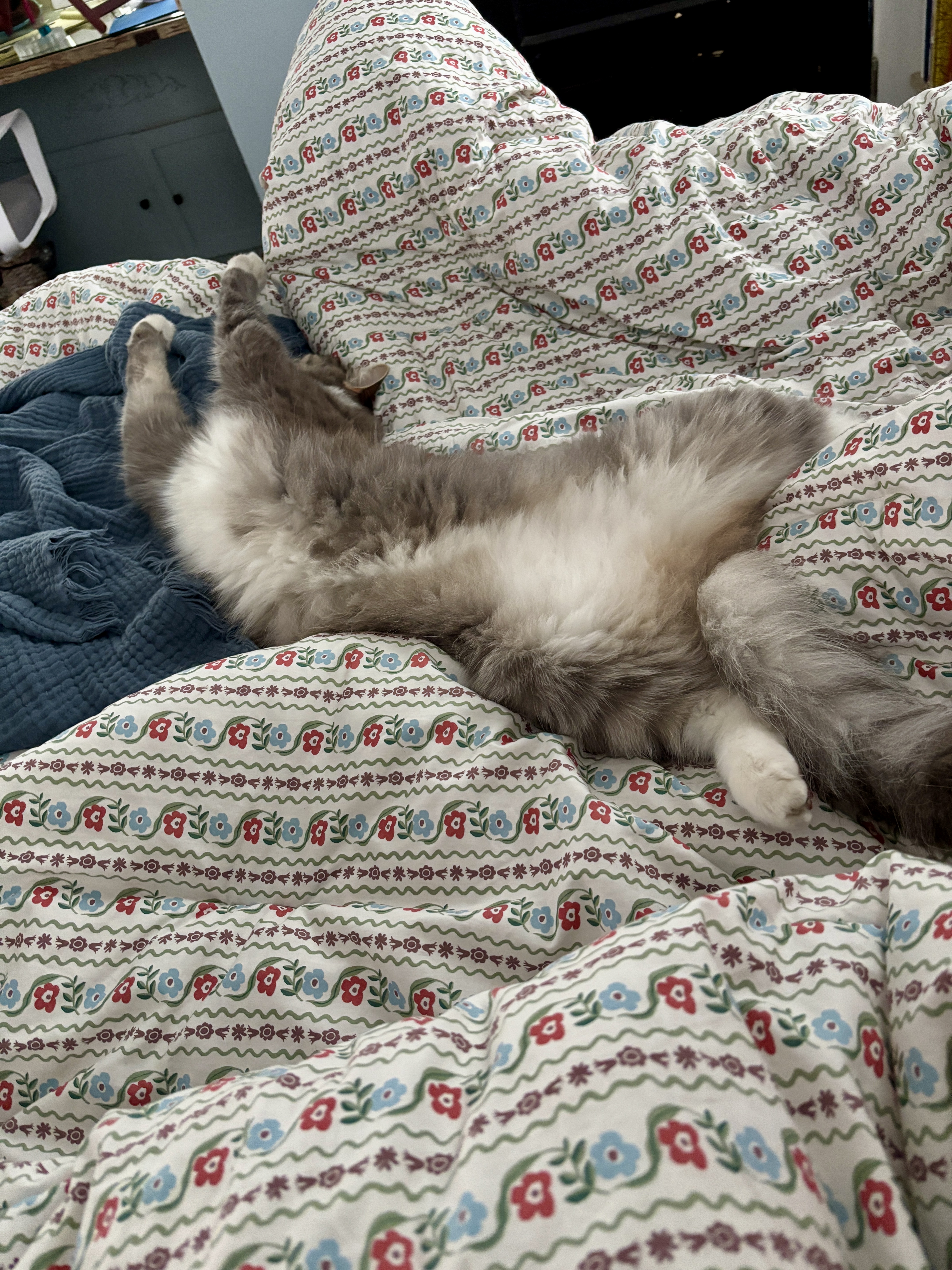 1. Loved seeing that stretched out kitty–obviously in Cat nirvana. As to the videos, so good for you to see Lucas and share him with others. That’s a great example of how grief should be dealt with–good for you! Hugs!