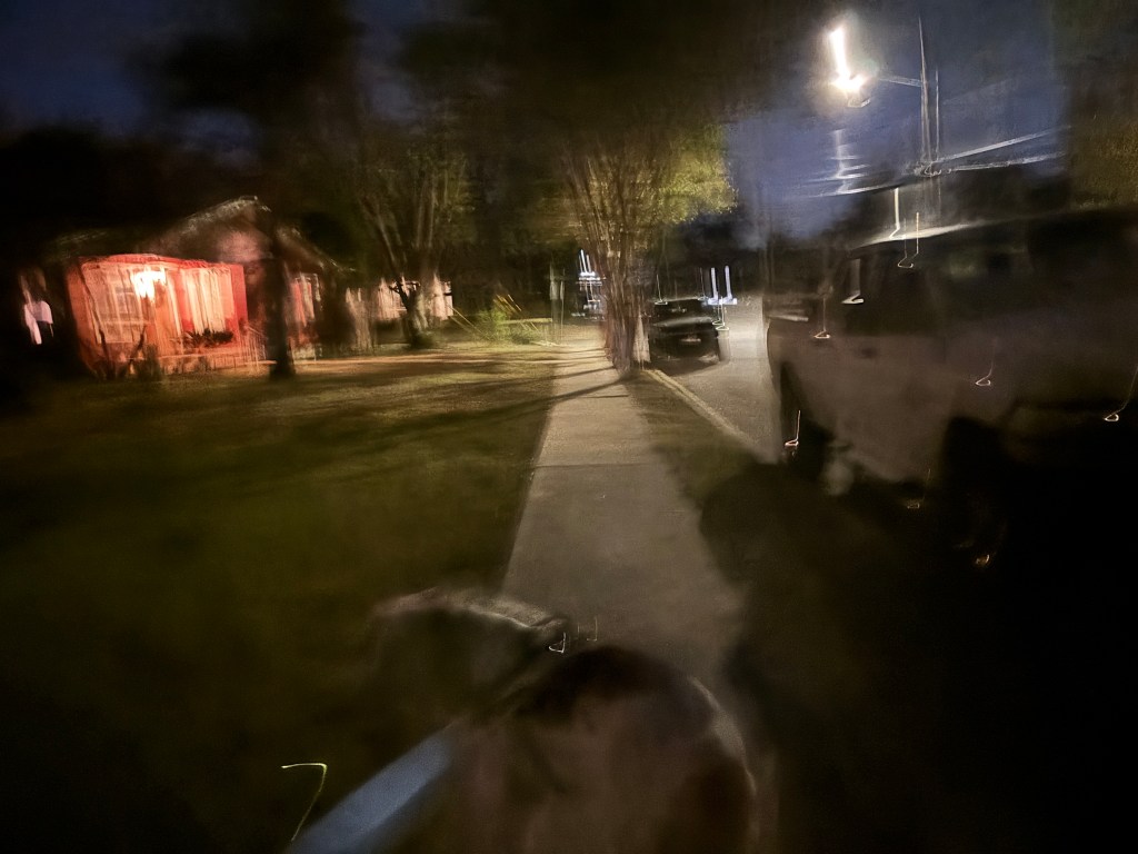 I am still taking the dog for nightly walks and sometimes I even have to wear a long sleeved tshirt with my shorts now- as the nights are cooler and the leaves are starting to fall. Of course this poses its own issues as Wilson is THE BIGGEST COWARD KNOWN TO MAN and afraid of the crunch of leaves under his feet or the skitter of leaves across the empty streets. The first night it was a real issue and he was whipping himself back and forth like one of the disposable, scared white dudes with a flashlight in the first 15 minutes of a slasher movie.