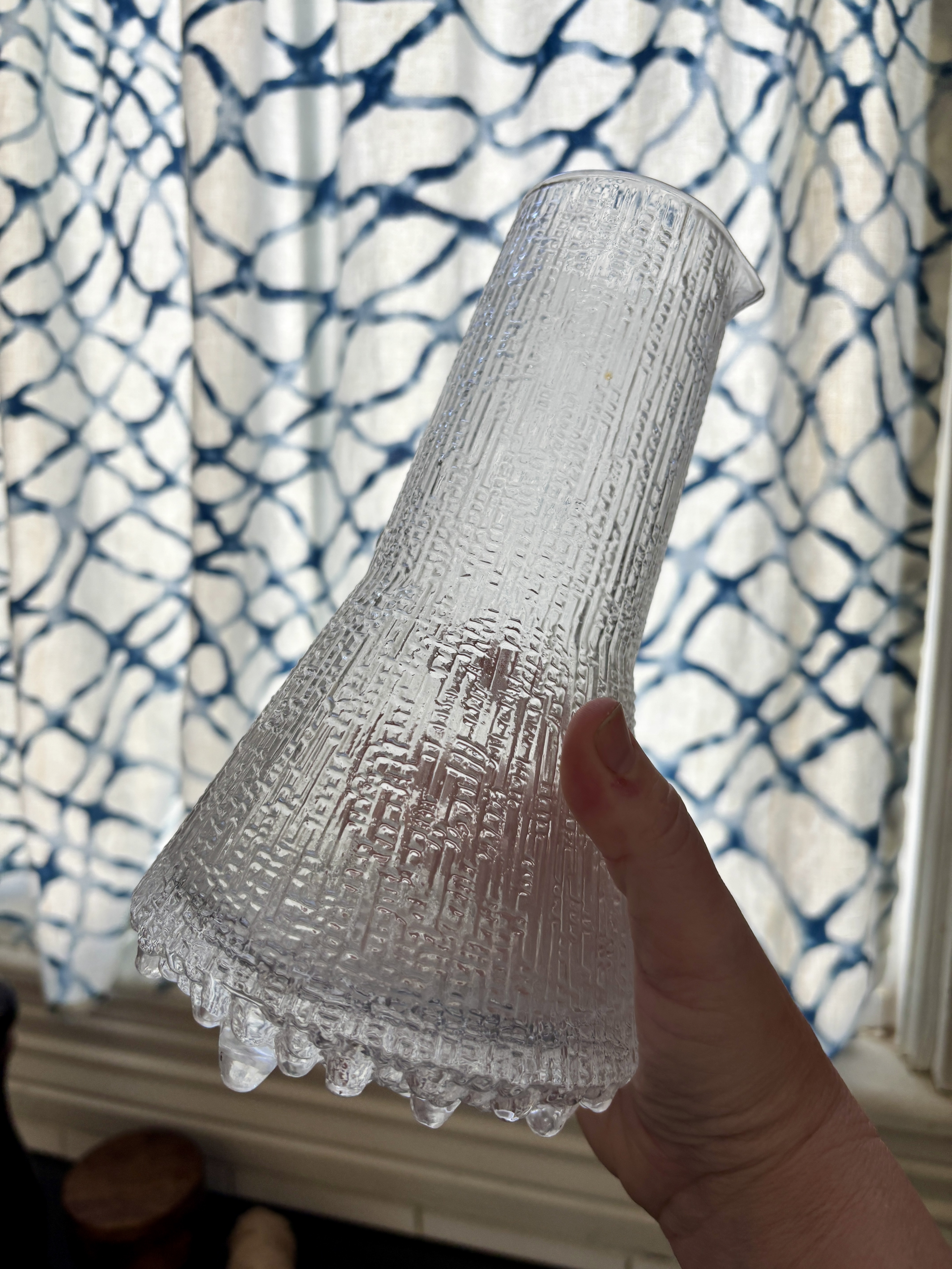 This one, since I love Finnish glassware, I am keeping. Though as I don’t use carafes I’m not sure why I own not one but two of them now. My other carafe is a Blenko. And I *heart* Blenko and that they’re from freaking West Virginia blows my mind. So Finnish and West Virginia glass is my sweet spot, I guess.