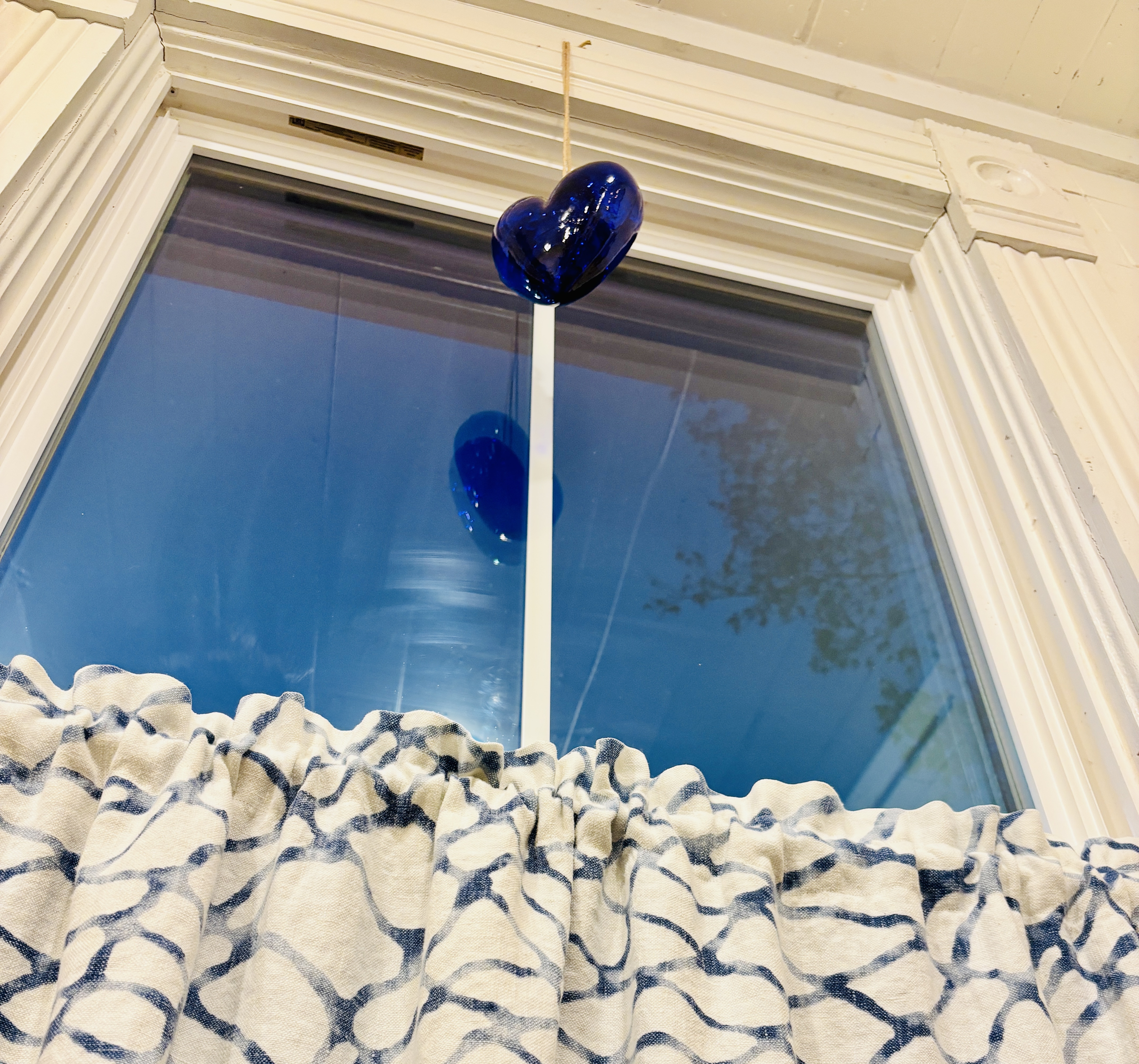 It was actually on my list of things to do this year- find two more, in the right color (very TBD as I kept waffling on what that would even be), to hang in the kitchen windows. I may not collect cobalt blue bottles or glassware, but these hearts were perfect. Plus, they’re Lucas’s favorite color, and it was going to be Valentine’s Day the next day… it felt appropriate.