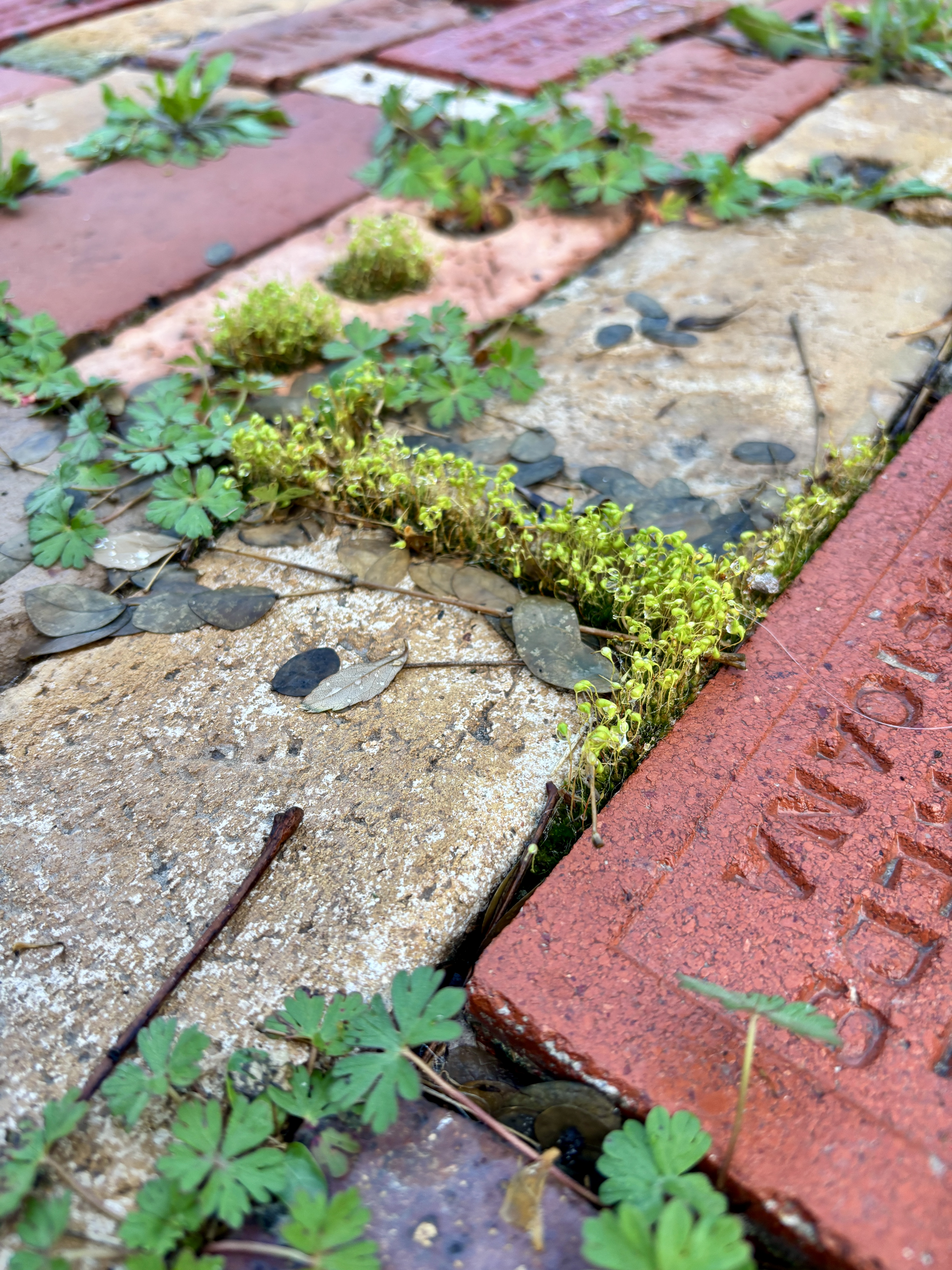 it wasn’t all sad. In between the rain I was able to go outside a few times and enjoy a stroll in the garden a few times. I tried to get some pictures of the moss in some spots on the brick patio- not very easy to accomplish in a way that does it justice, but I tried.