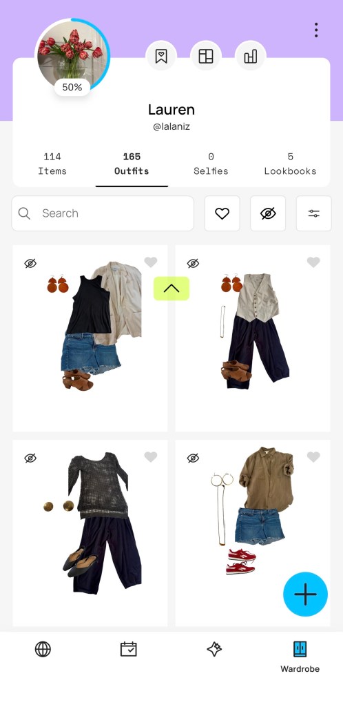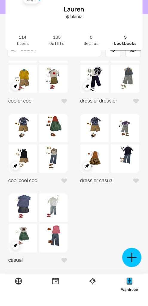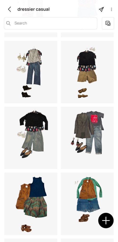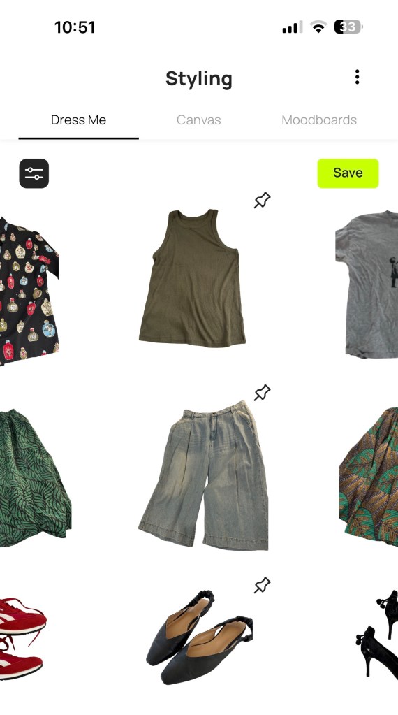 I have bought many clothes over the years that I love and then don’t wear. I’ve also been trying (DECADES) to style my clothes better, to varying degrees of non-success in the past. I am going to share something that has been helping and doesn’t require more clothes, stylist fees, or researching rules… a digital closet app I’ve been using.