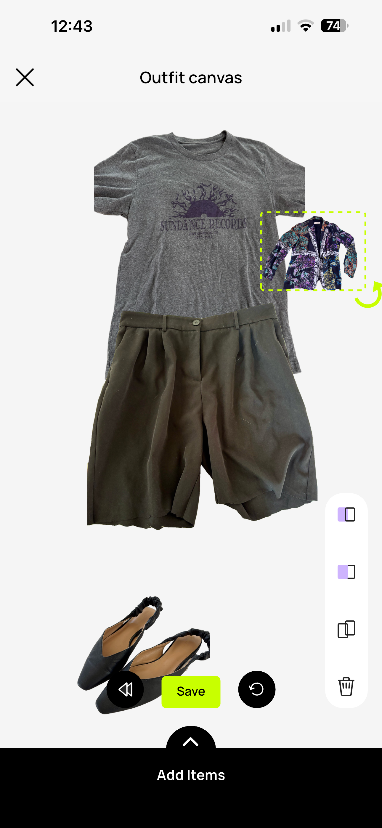 Here is an example of a resized and moved around outfit in the app.